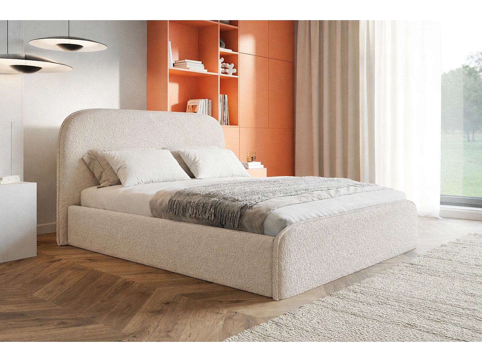 Polsterbett mit Bettkasten 140x200 Wendra - rundem Kopfteil, Lattenrost - Bouclé, Beige (Catch me 2)