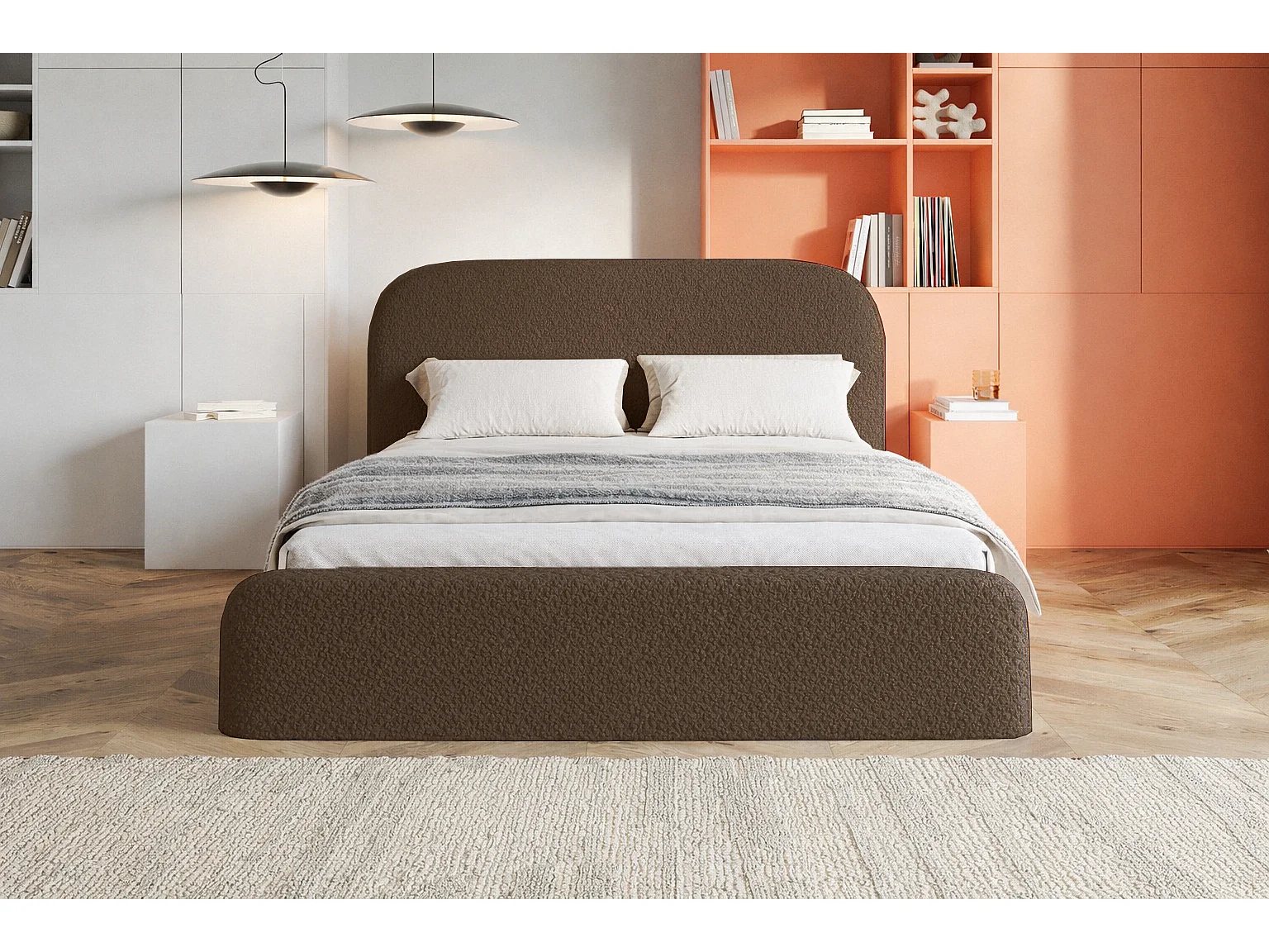 Polsterbett mit Bettkasten 140x200 Wendra - rundem Kopfteil, Lattenrost - Bouclé, Braun (Catch me 6)