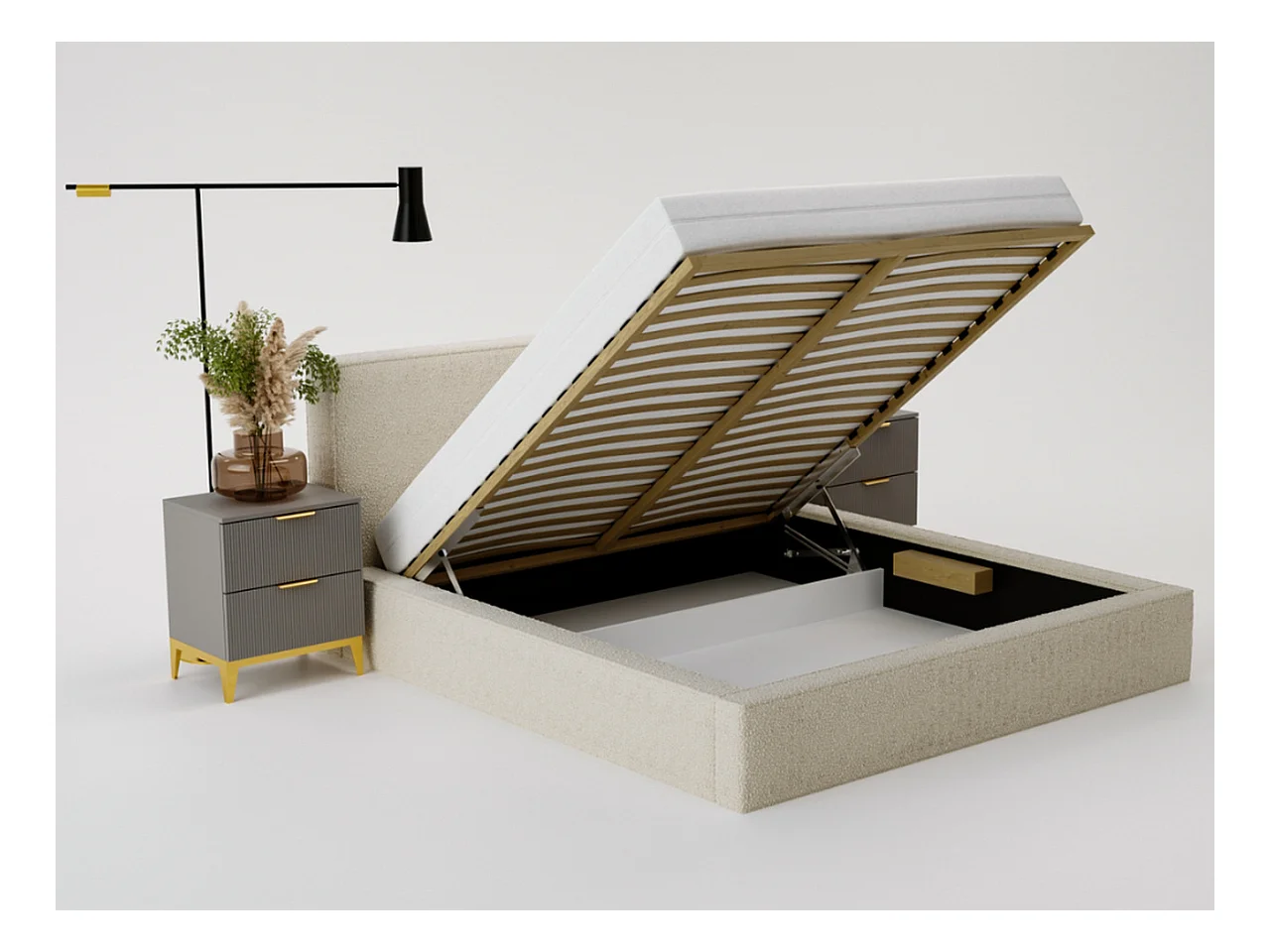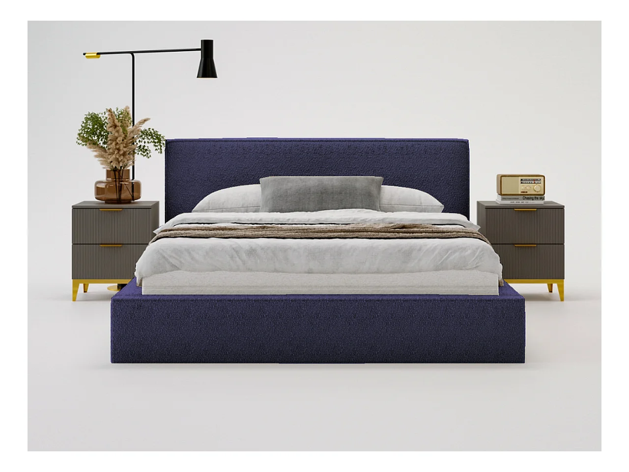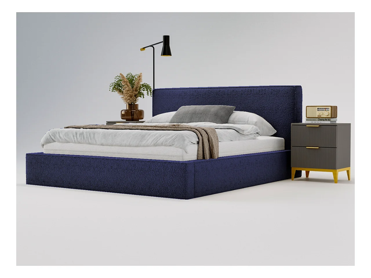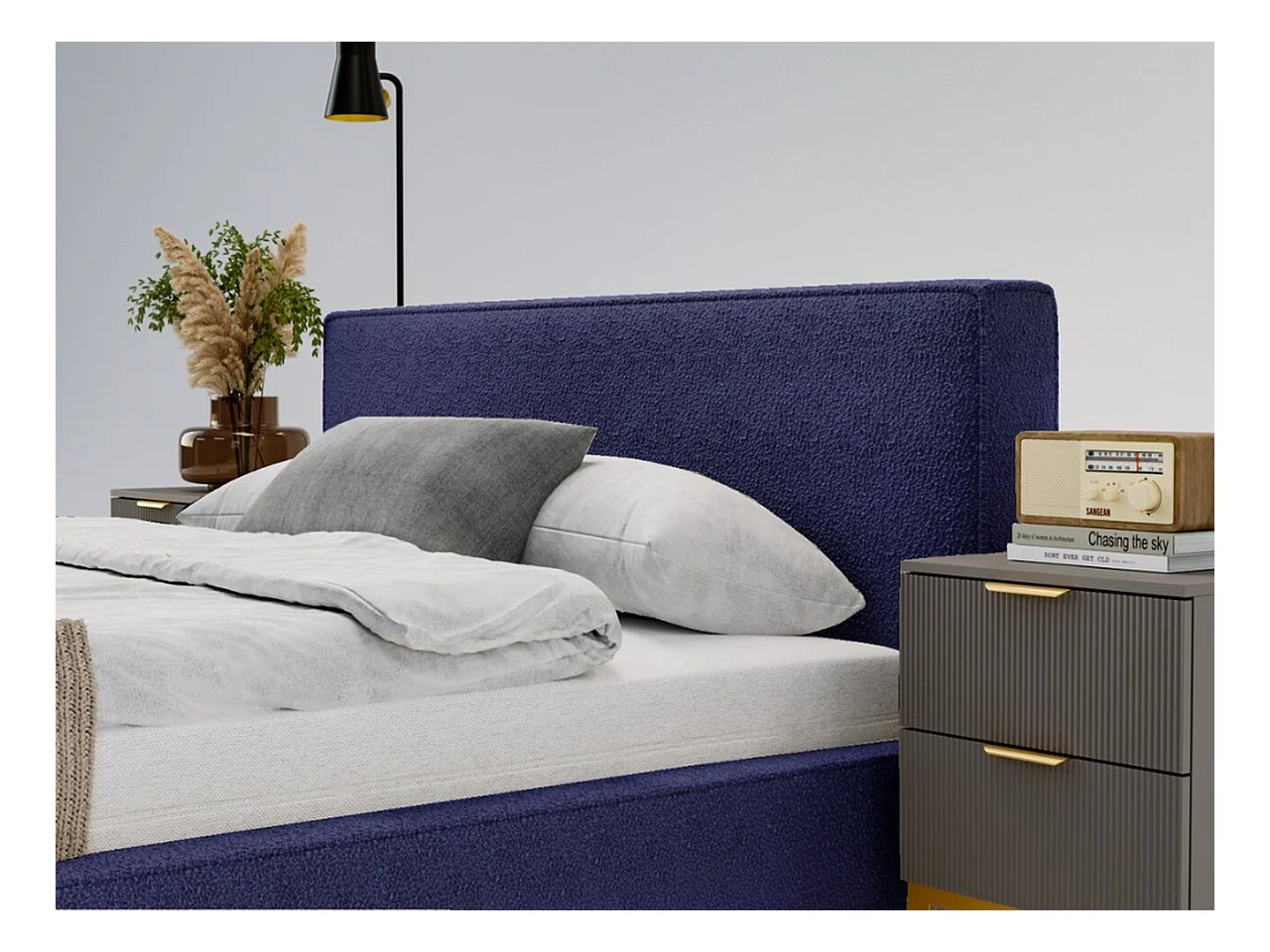 Polsterbett mit Bettkasten - 160 x 200 - Bouclé-Stoff - Blau - Bett mit Lattenrost - MONACO