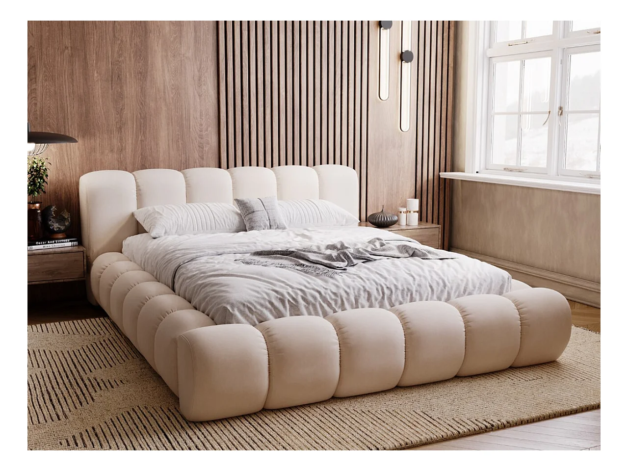 Polsterbett mit Bettkasten - 160 x 200 - Samtstoff - Beige - Bett mit Lattenrost - DORIA