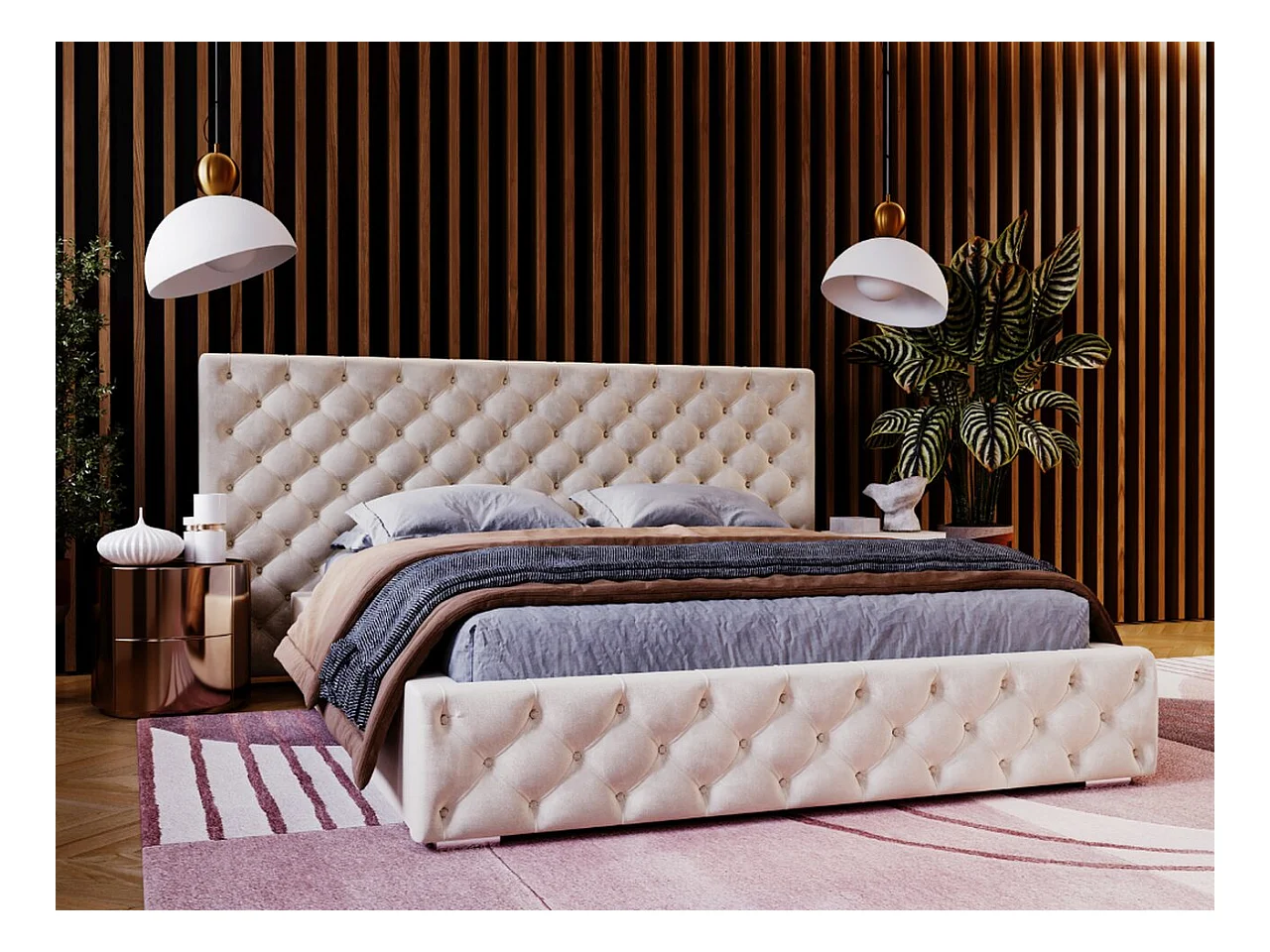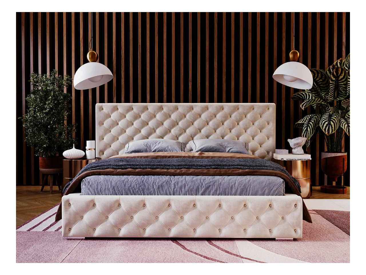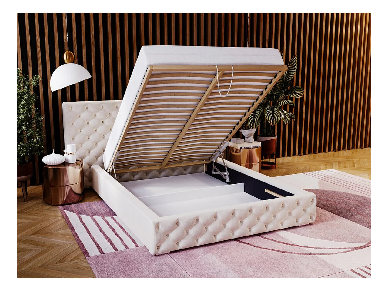 Polsterbett mit Bettkasten - 160 x 200 - Samtstoff - Beige - Bett mit Lattenrost - MADERA
