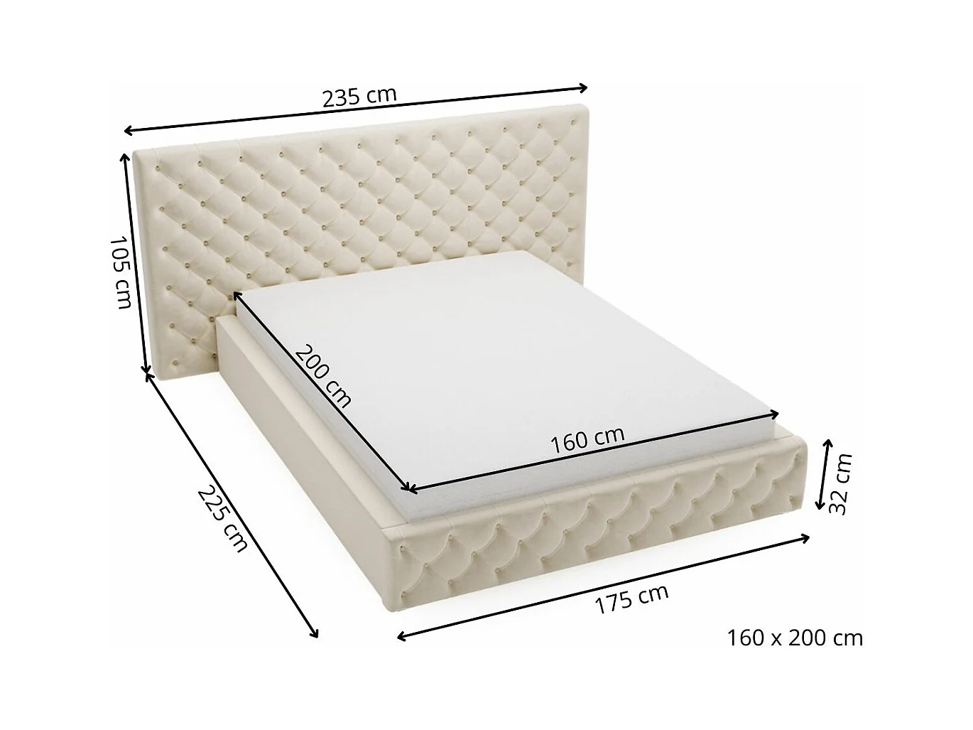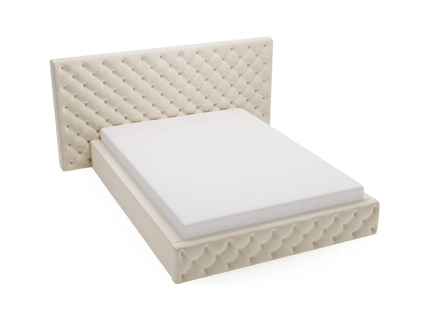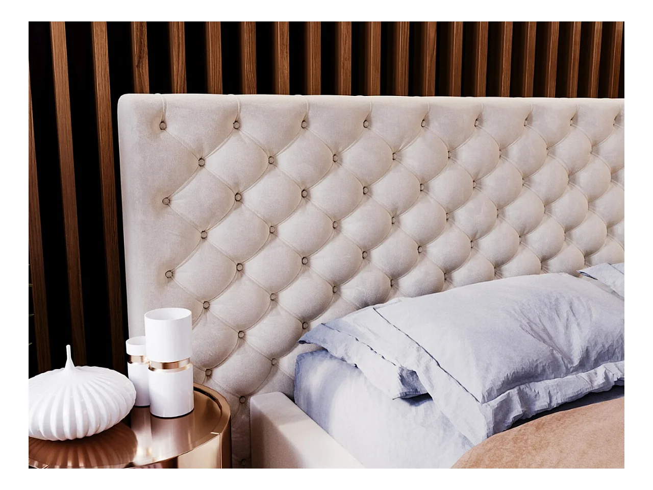Polsterbett mit Bettkasten - 160 x 200 - Samtstoff - Beige - Bett mit Lattenrost - MADERA