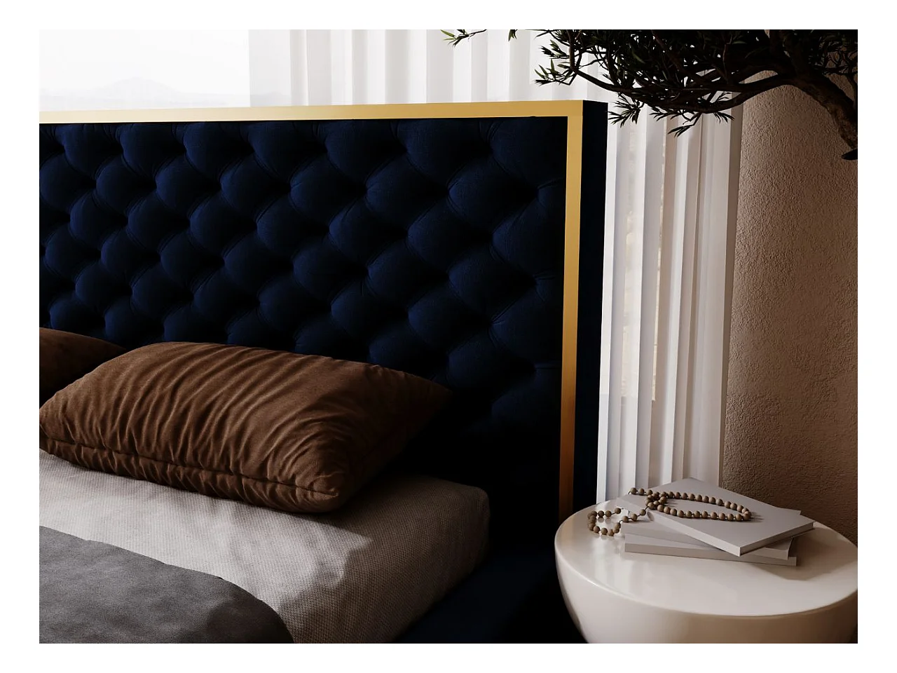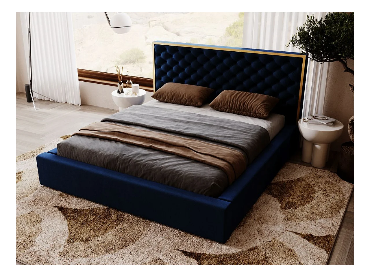 Polsterbett mit Bettkasten - 160 x 200 - Samtstoff - Blau - Bett mit Lattenrost - BONITO