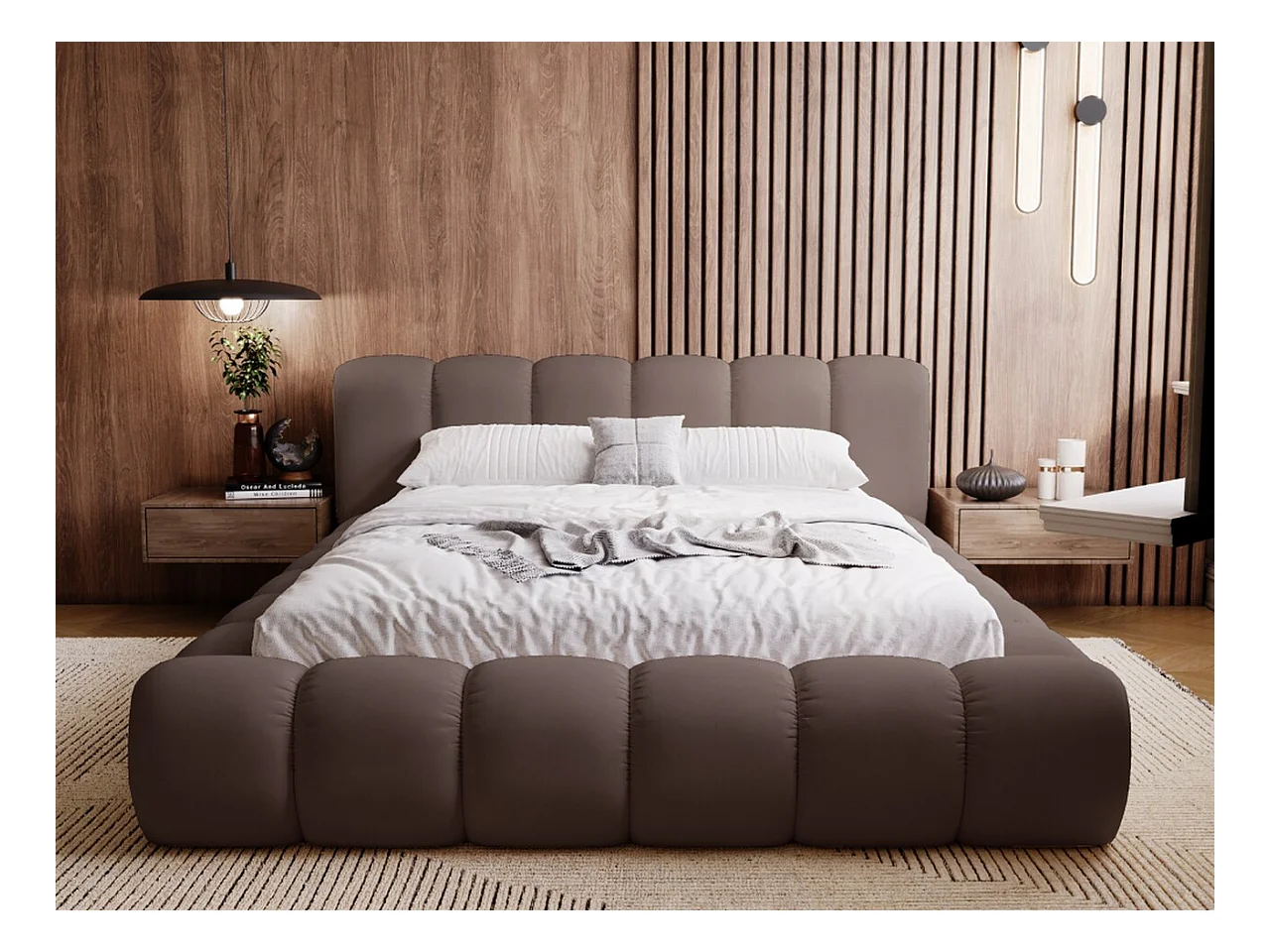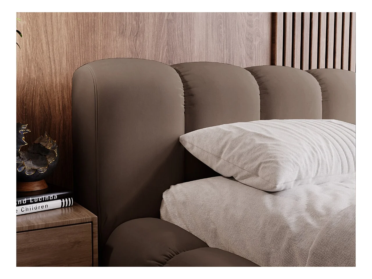 Polsterbett mit Bettkasten - 160 x 200 - Samtstoff - Braun - Bett mit Lattenrost - DORIA