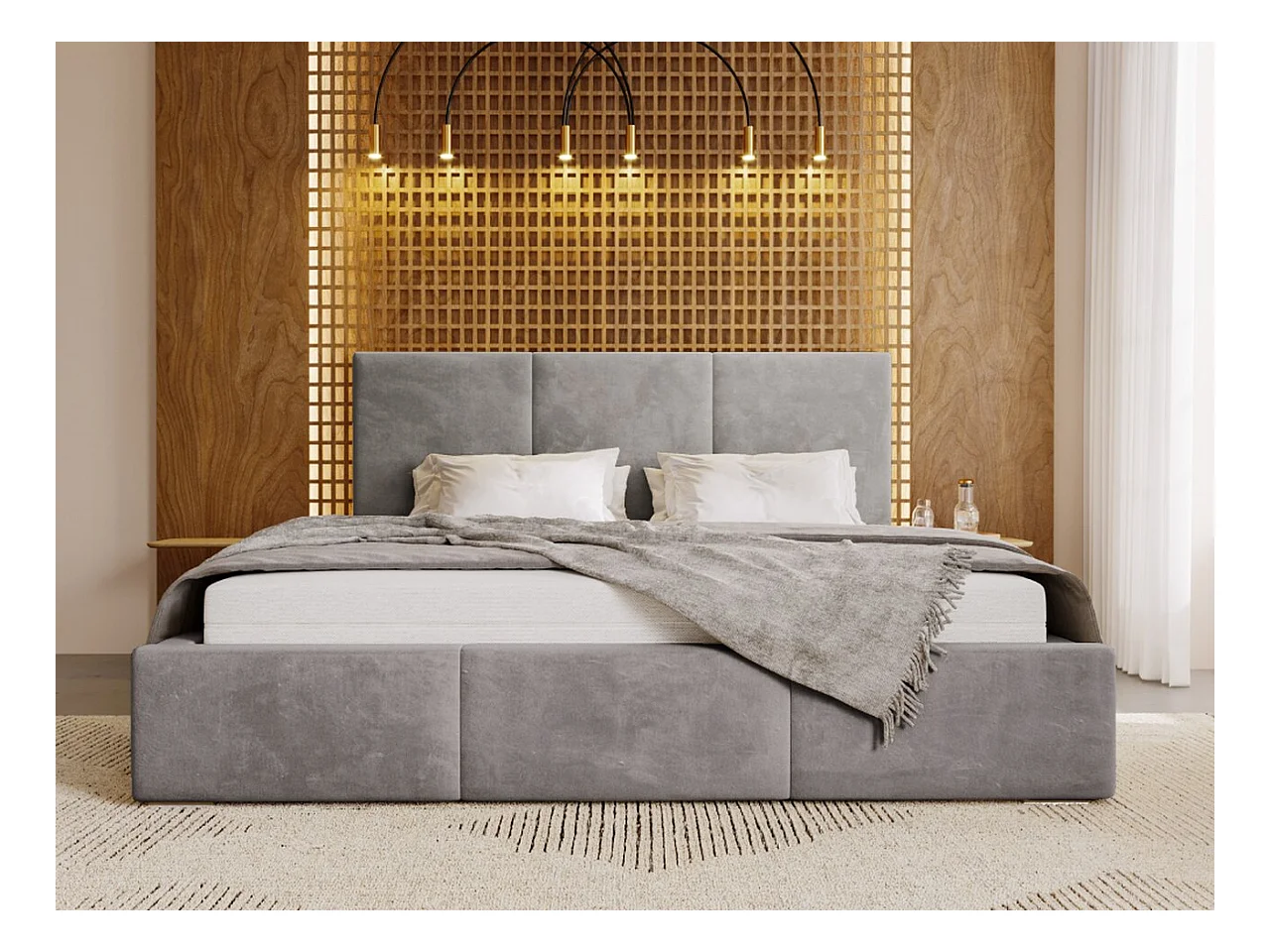 Polsterbett mit Bettkasten - 160 x 200 - Samtstoff - Grau - Bett mit Lattenrost - LINCOLN