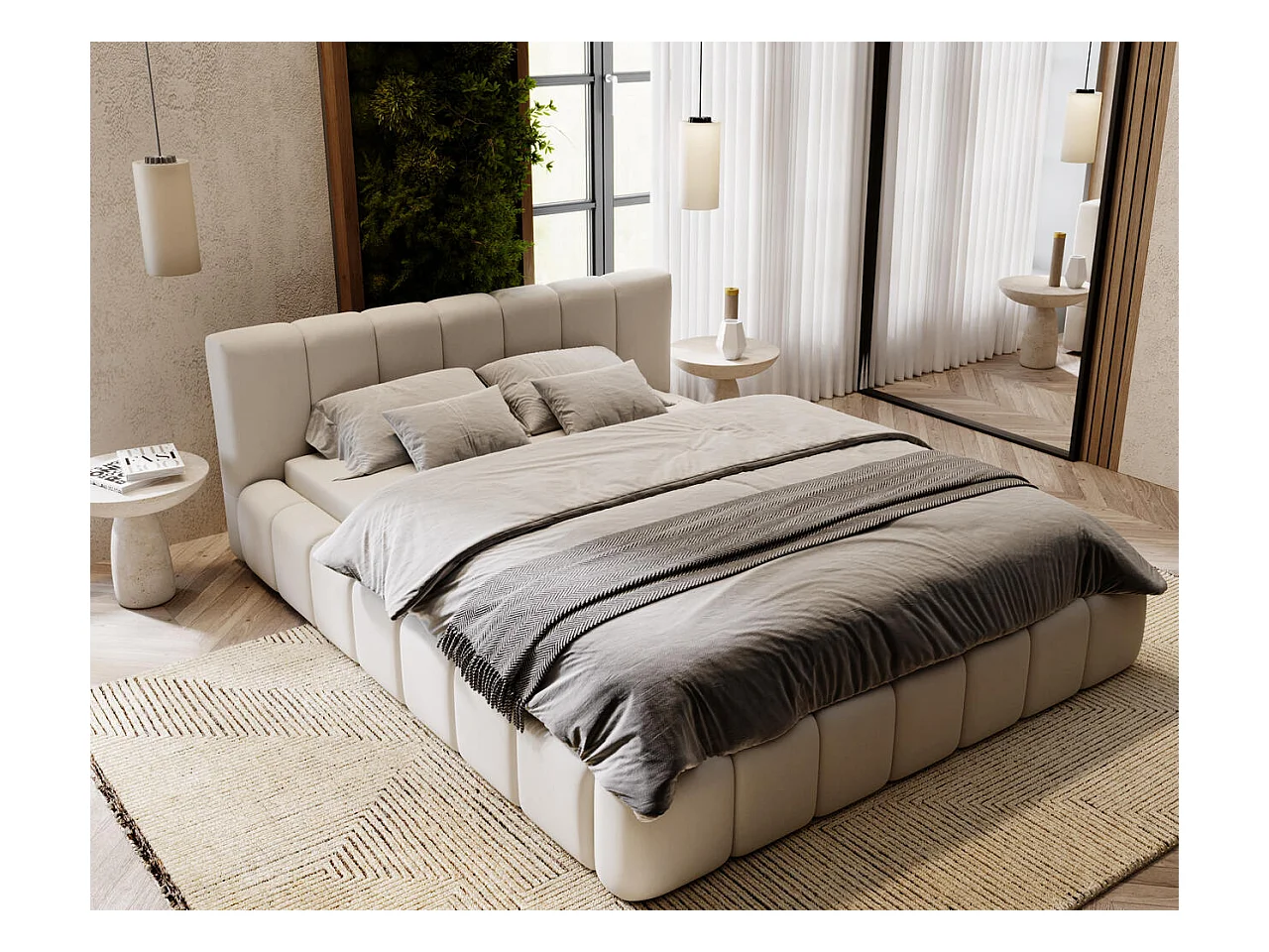 Polsterbett mit Bettkasten - 160 x 200 - Samtstoff - Hellgrau - Bett mit Lattenrost - SPLIT
