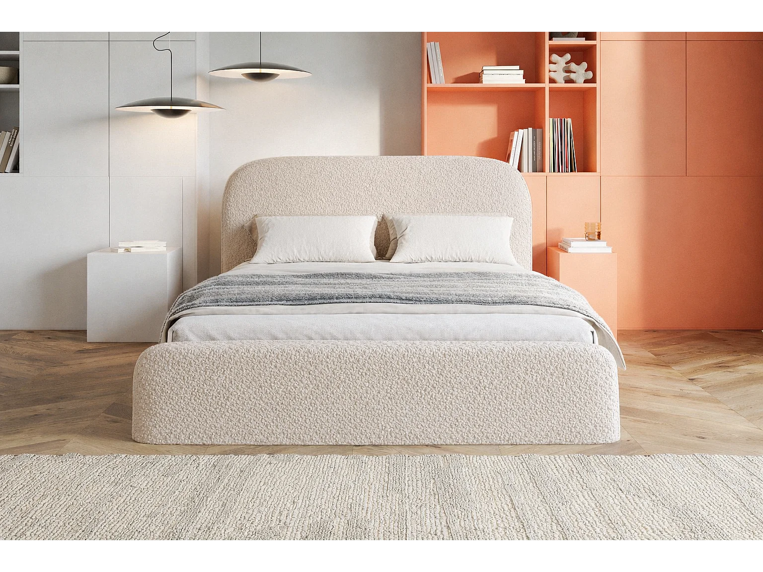 Polsterbett mit Bettkasten 160x200 Wendra - rundem Kopfteil, Lattenrost - Bouclé, Beige (Catch me 2)