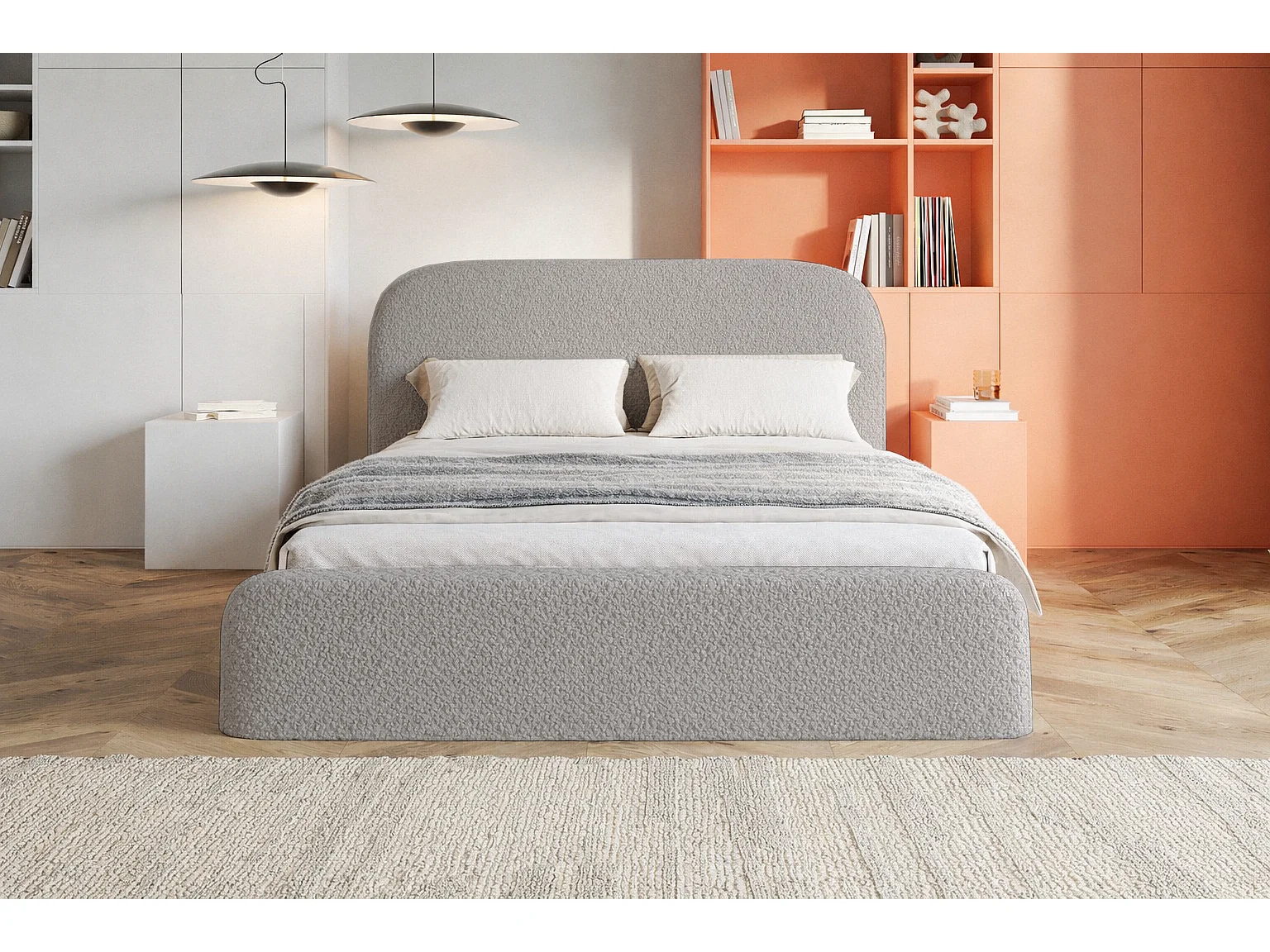 Polsterbett mit Bettkasten 160x200 Wendra - rundem Kopfteil, Lattenrost - Bouclé, Hellgrau (Catch me 24)