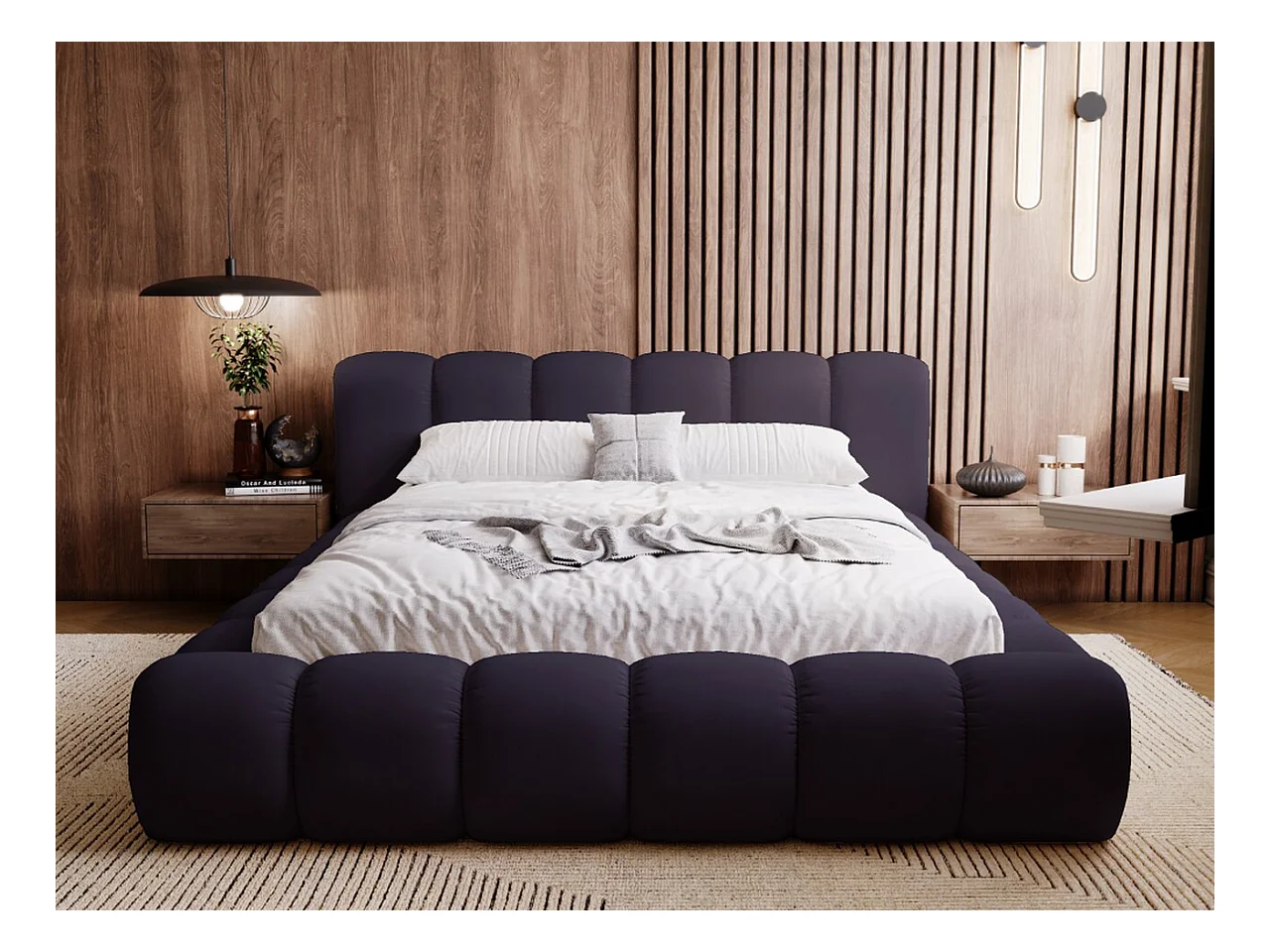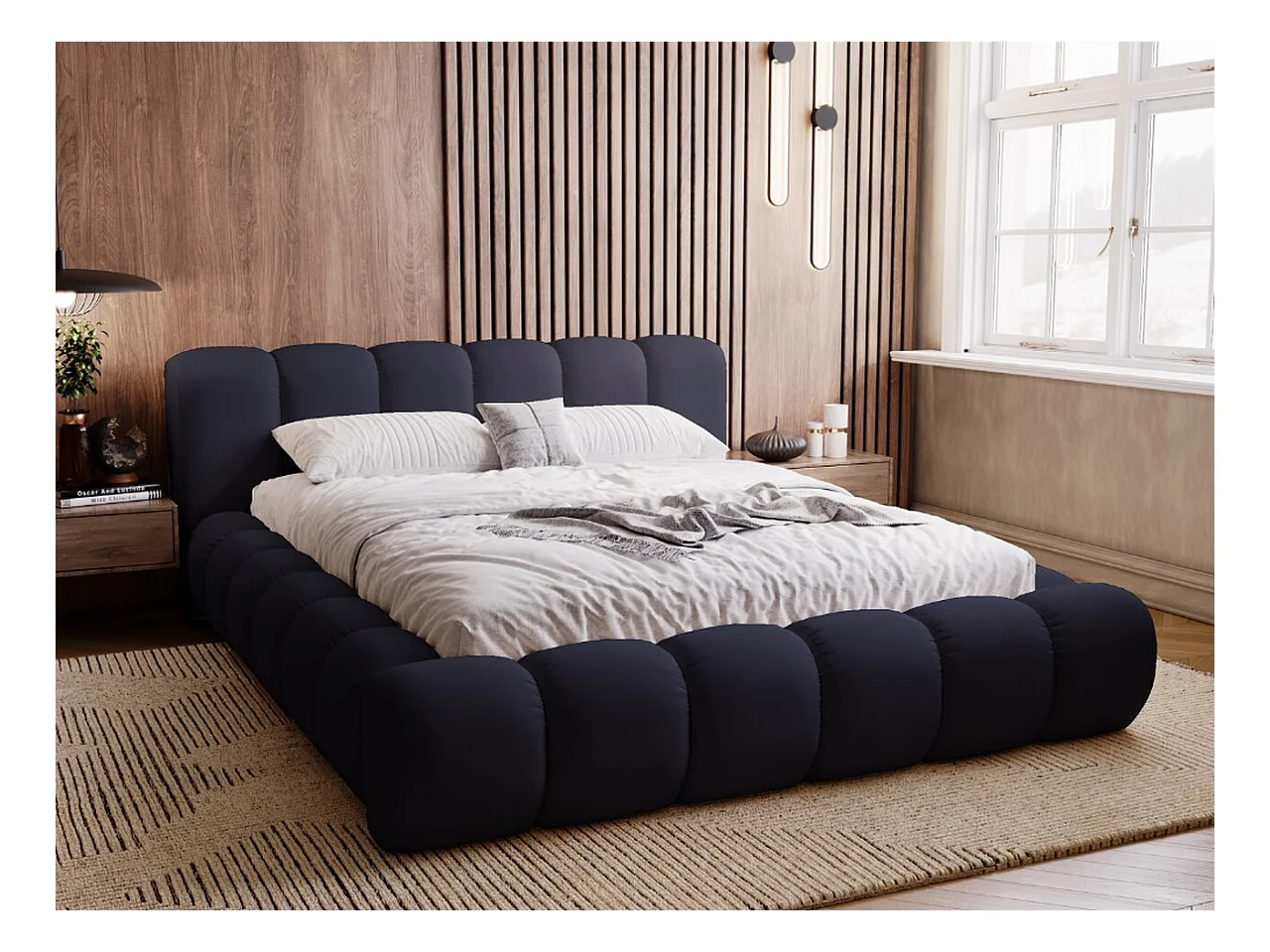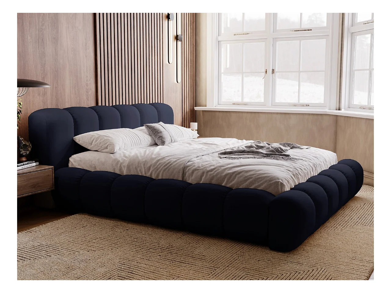 Polsterbett mit Bettkasten - 180 x 200 - Samtstoff - Marineblau - Bett mit Lattenrost - DORIA
