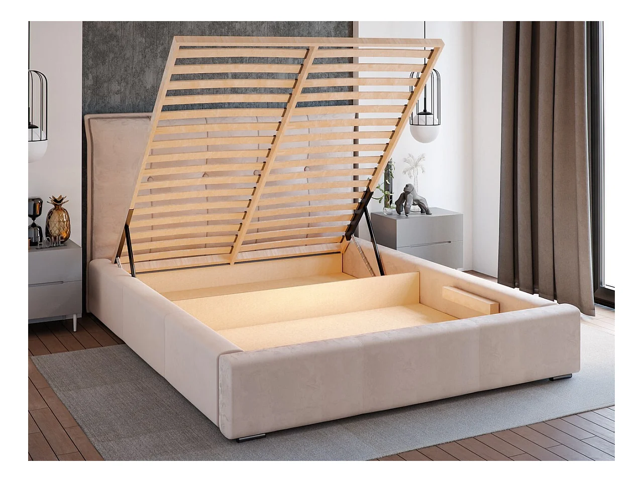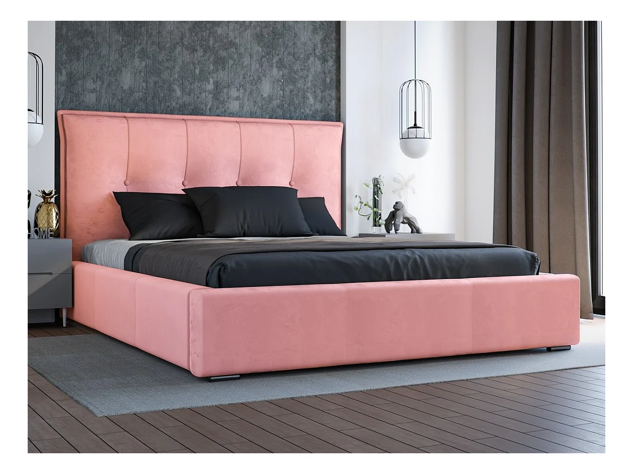 Polsterbett mit Bettkasten - 180 x 200 - Samtstoff - Rosa - Bett mit Lattenrost - VALENCIA