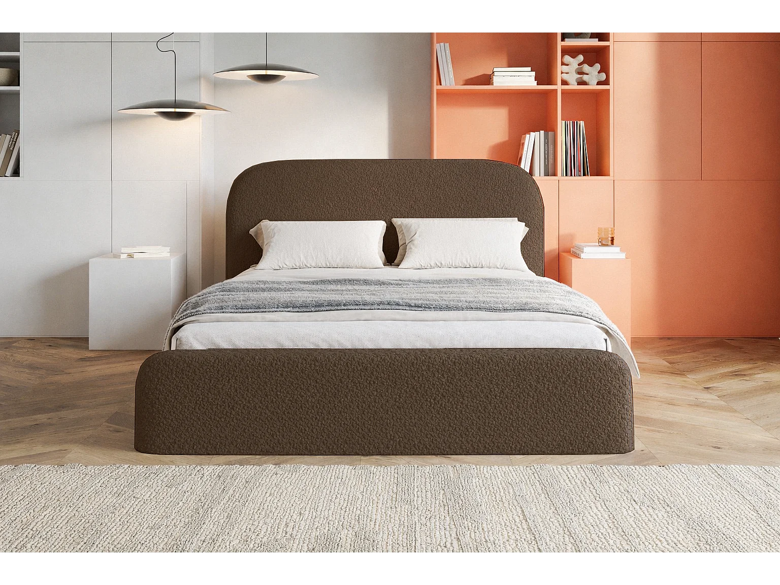 Polsterbett mit Bettkasten 180x200 Wendra - rundem Kopfteil, Lattenrost - Bouclé, Braun (Catch me 6)