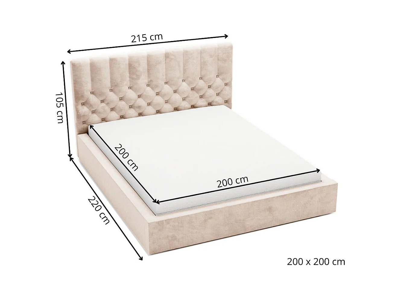 Polsterbett mit Bettkasten - 200 x 200 - Samtstoff - Beige - Bett mit Lattenrost - ROMA