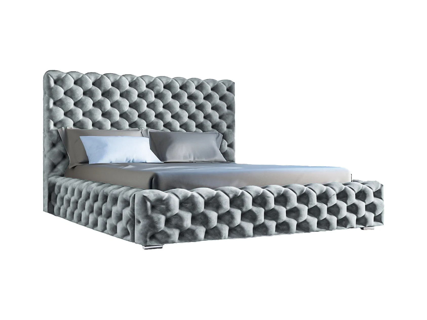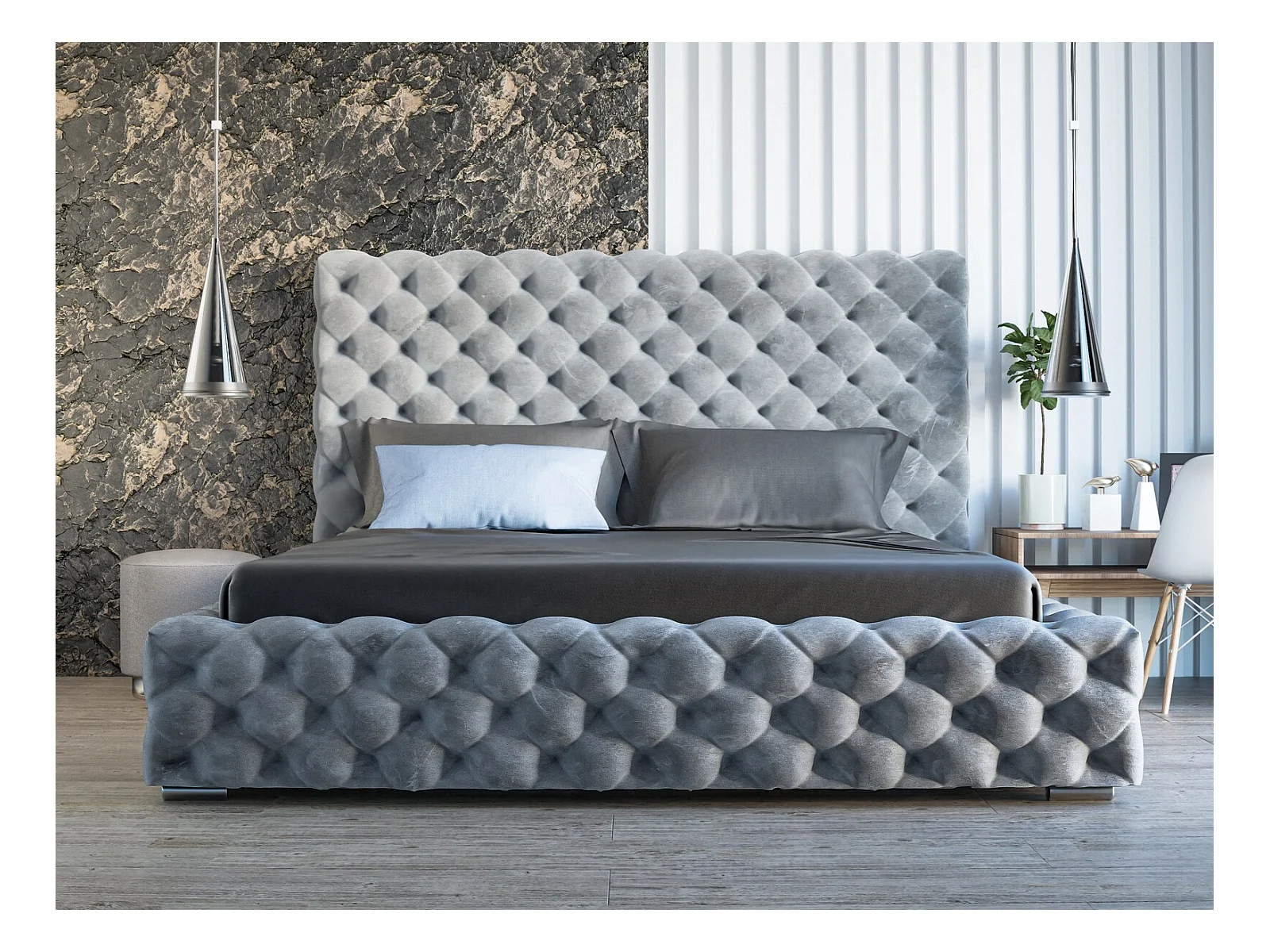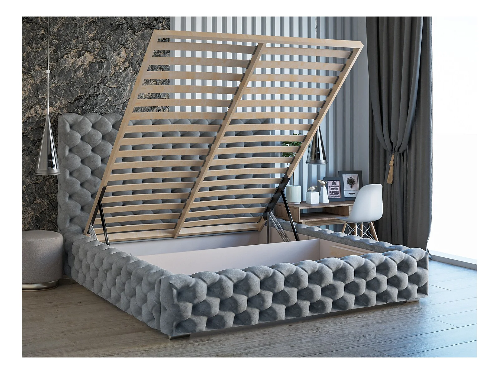 Polsterbett mit Bettkasten - 200 x 200 - Samtstoff - Hellgrau - Bett mit Lattenrost - HEAVEN