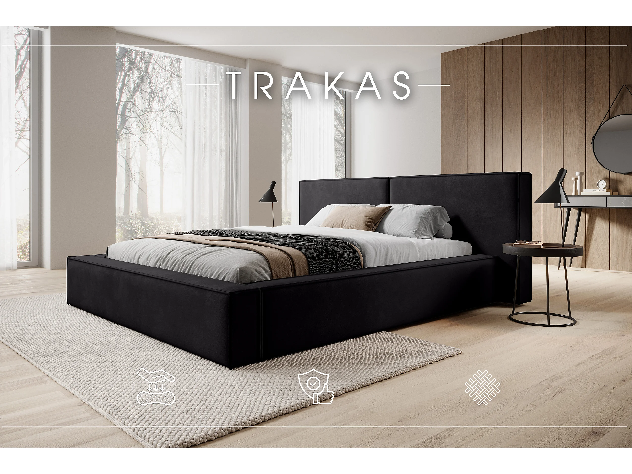 POLSTERBETT mit Bettkasten Matratze Trakas 200x200 cm, Anthrazit