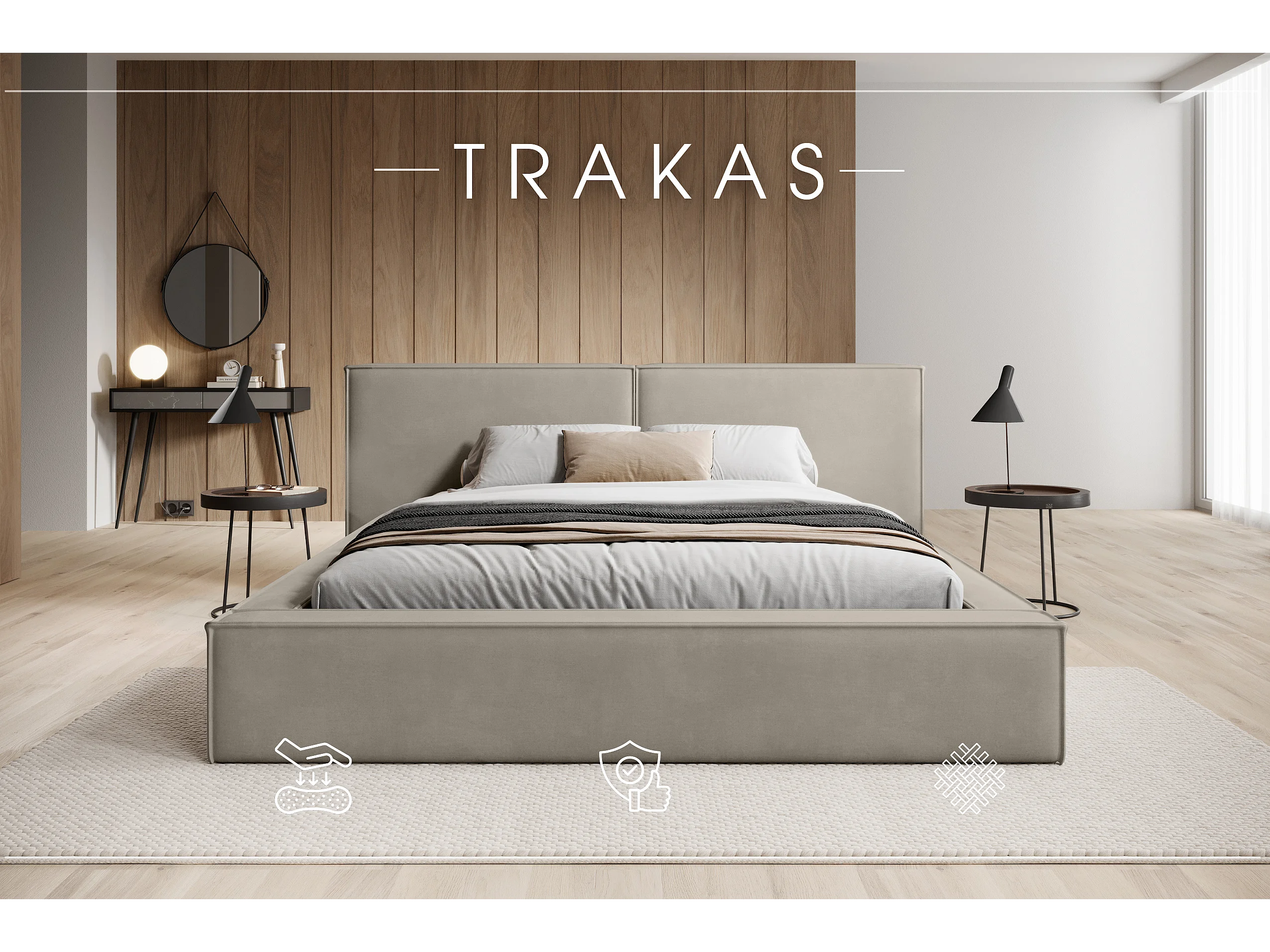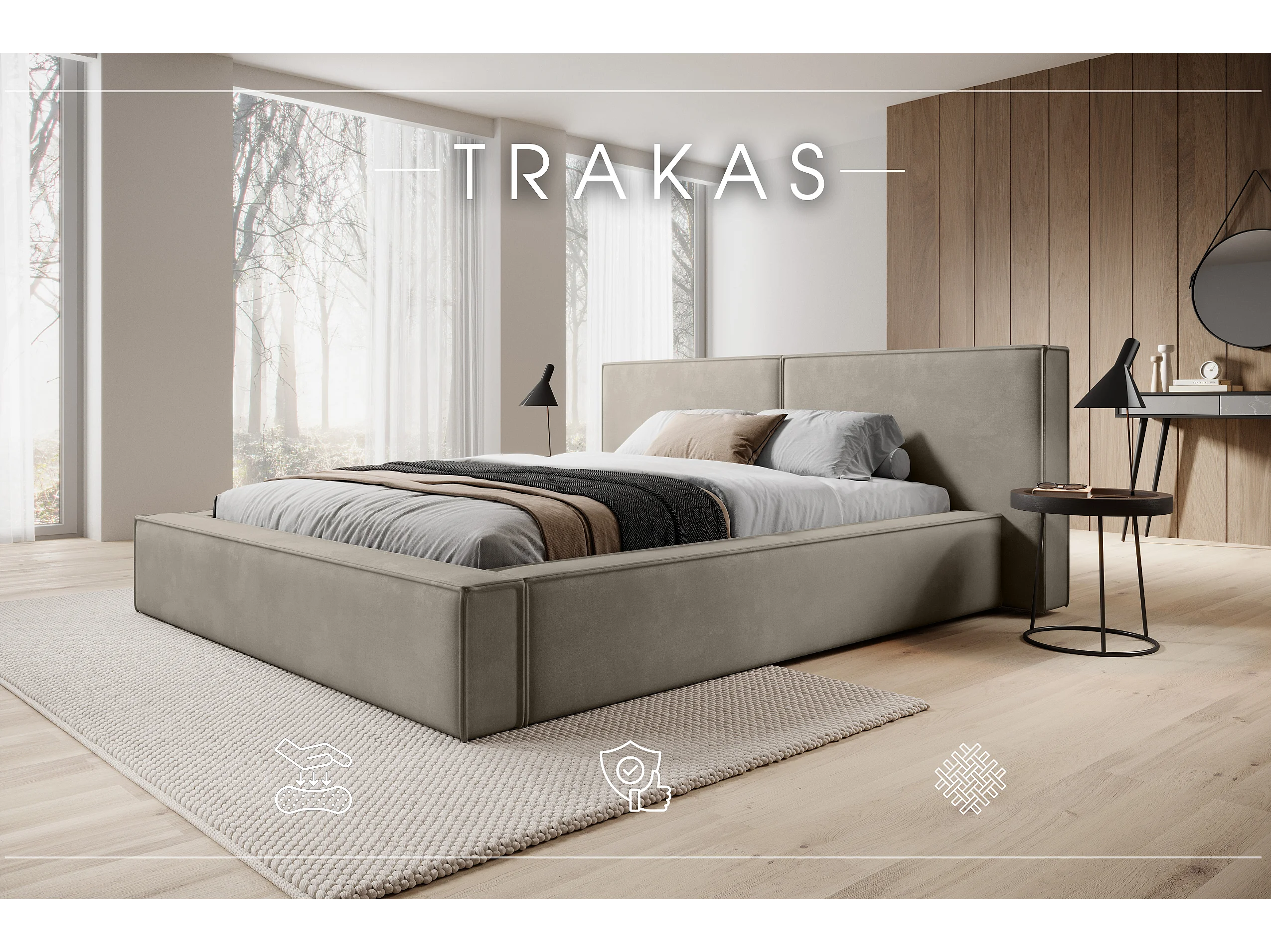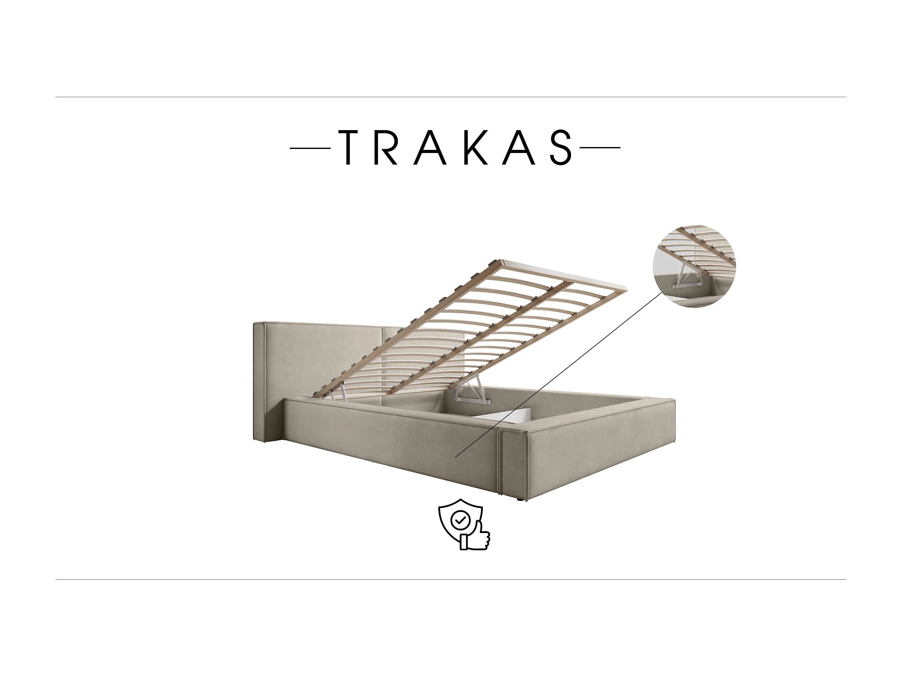 POLSTERBETT mit Bettkasten Trakas 200x200 cm, Hellbeige