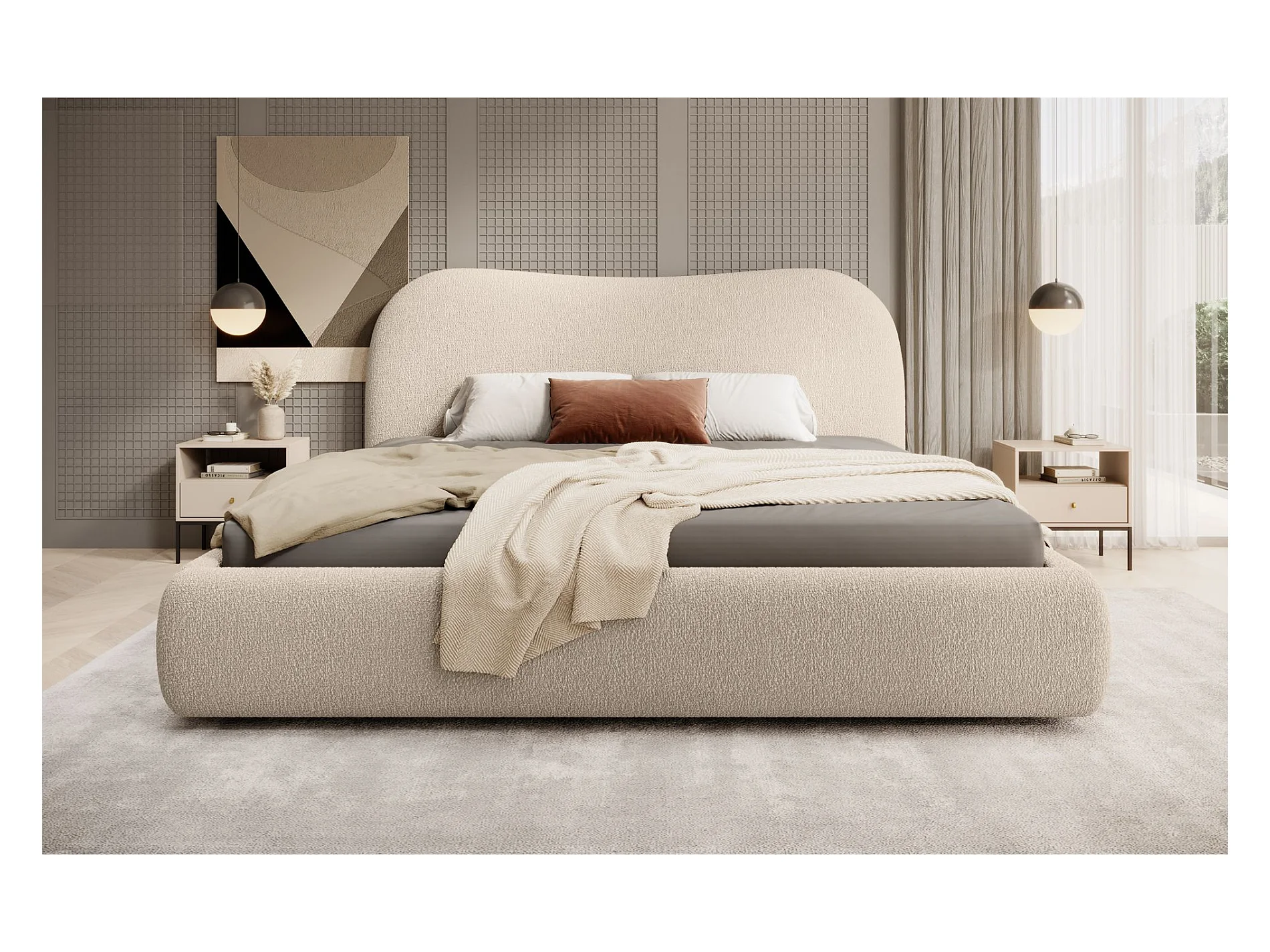Polsterbett mit Bouclé-Bezug und Stauraum - Beige - 160x200 cm - SIMSALO