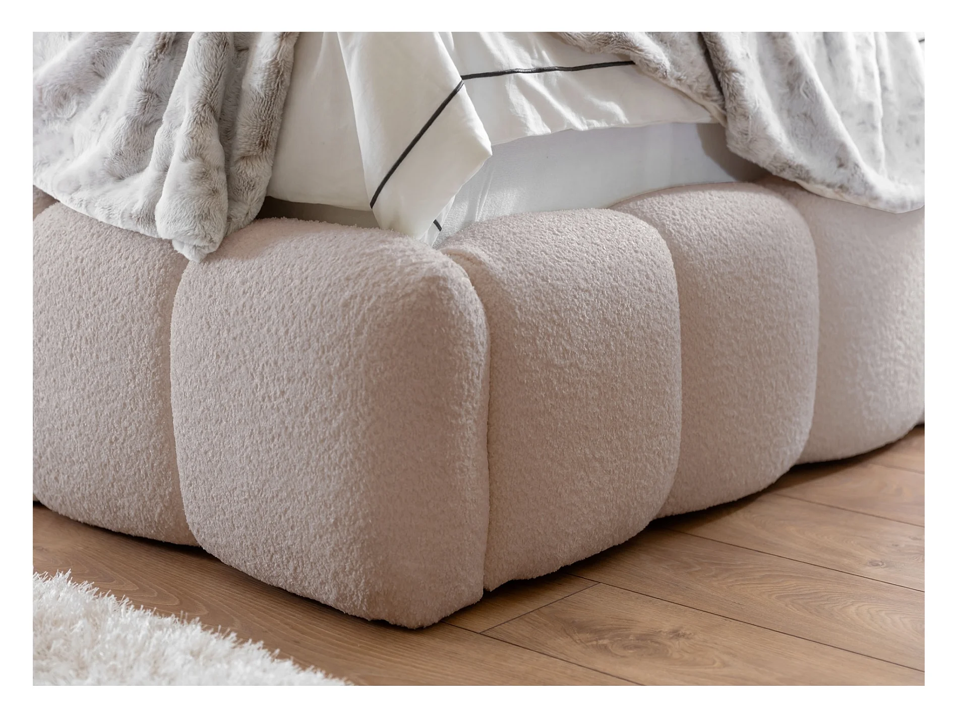 Polsterbett mit Bouclé-Bezug und Stauraum - Hellbeige - 140x200 cm - CANDE