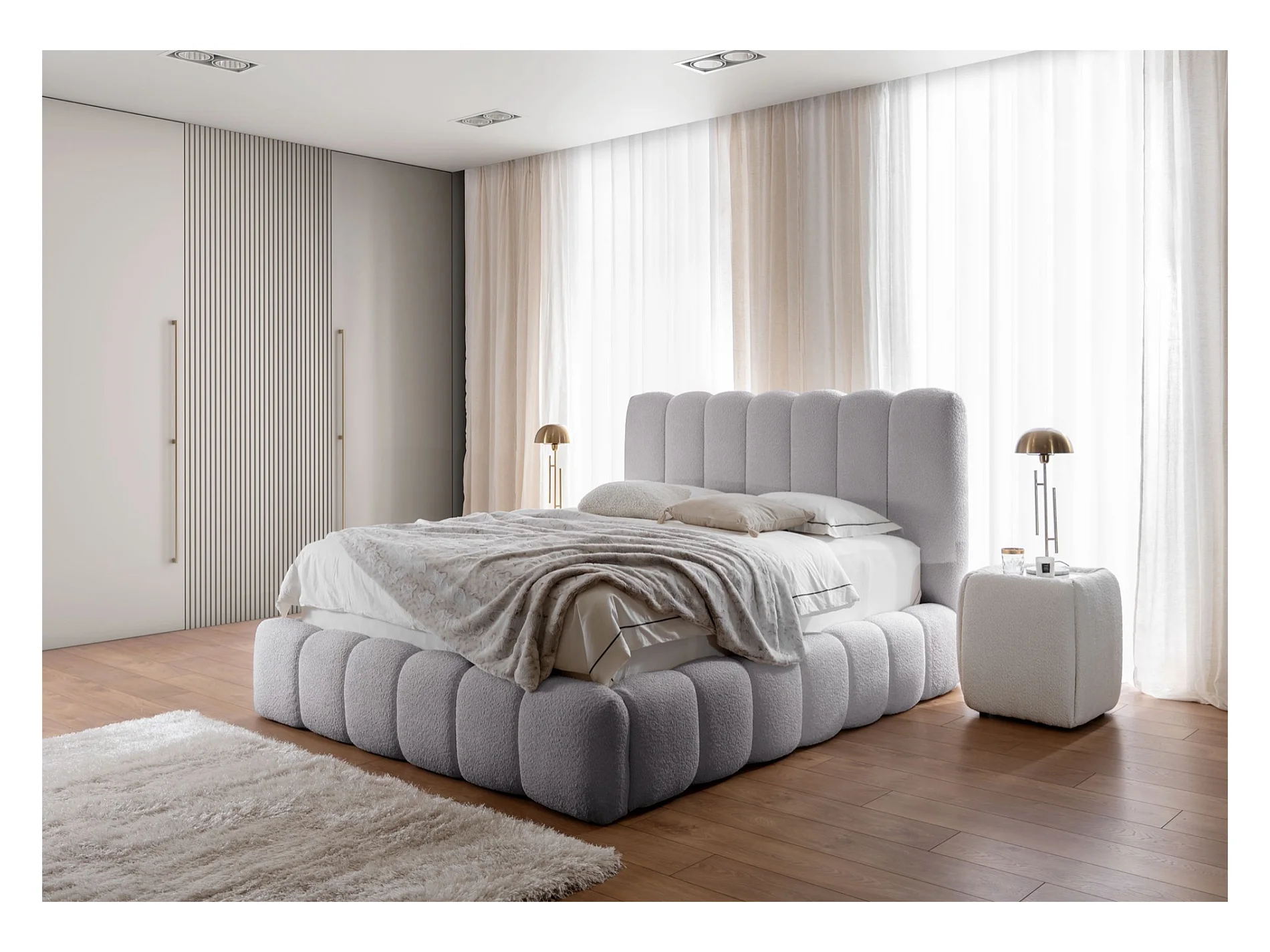 Polsterbett mit Bouclé-Bezug und Stauraum - Hellgrau - 160x200 cm - CANDE