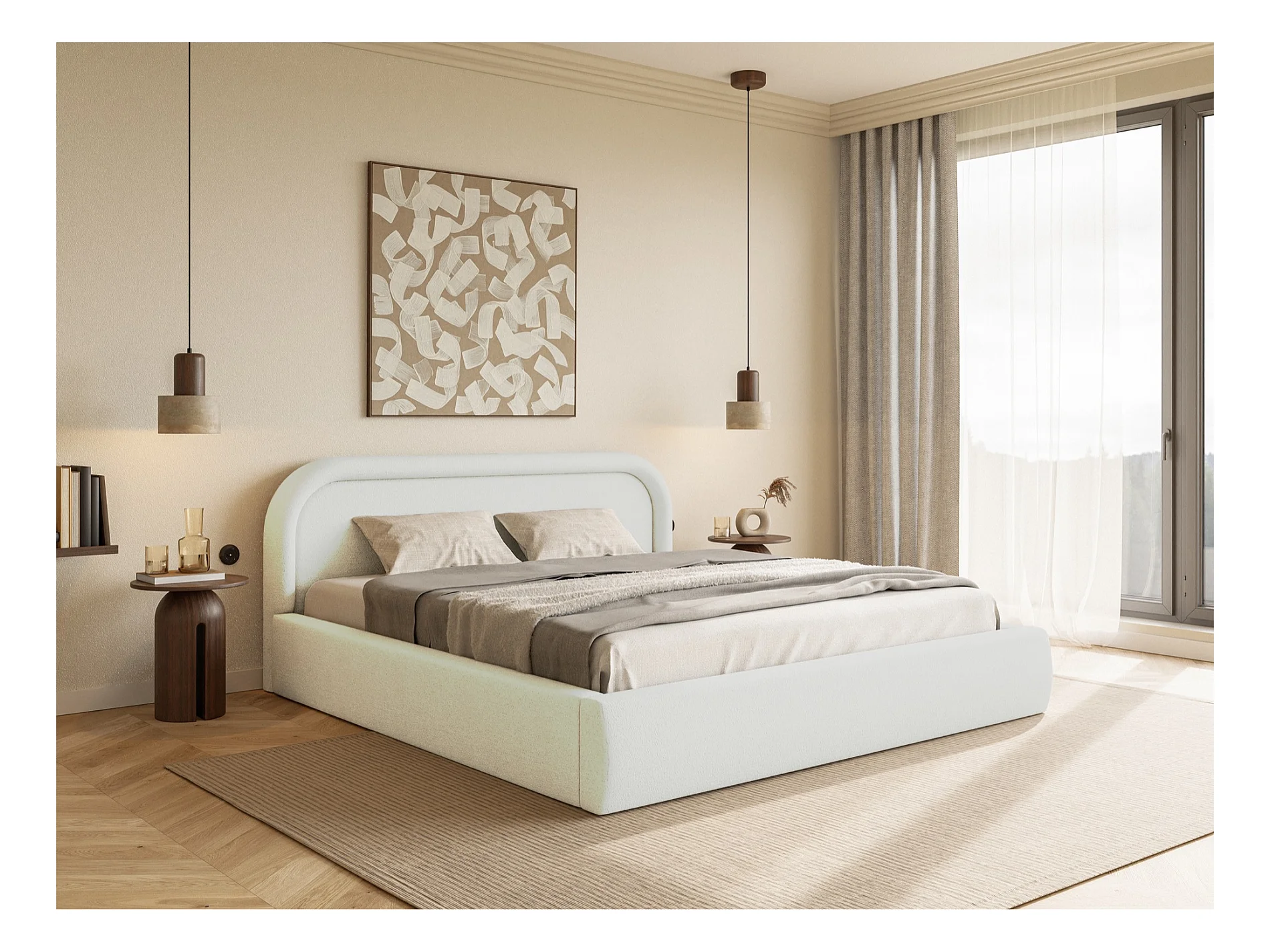 Polsterbett mit Lattenrost und Stauraum - Creme - 180x200 cm - RUVI