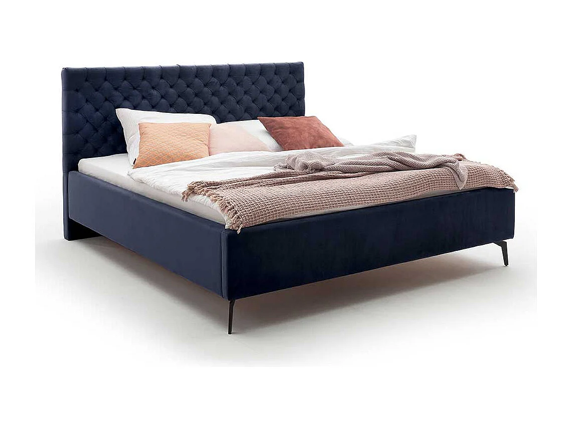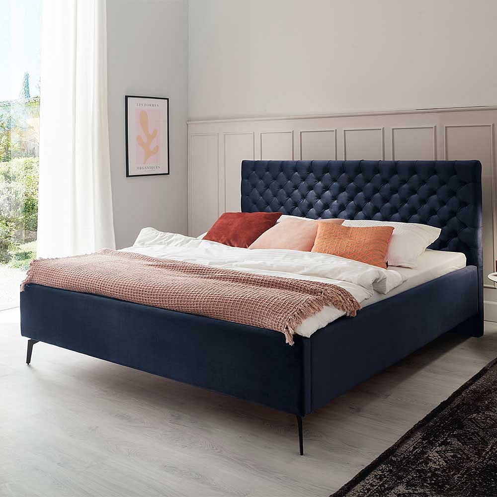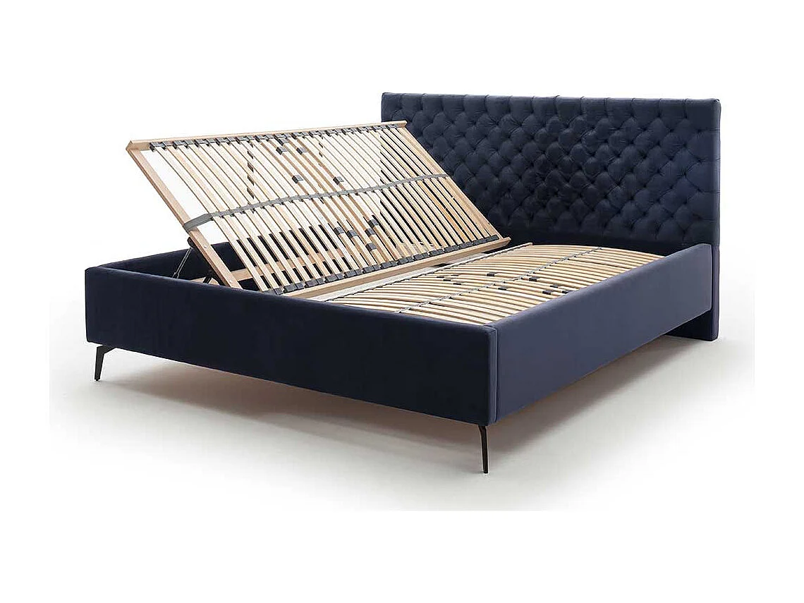 Polsterbett mit Lattenrosten und Bettkasten Dunkelblau