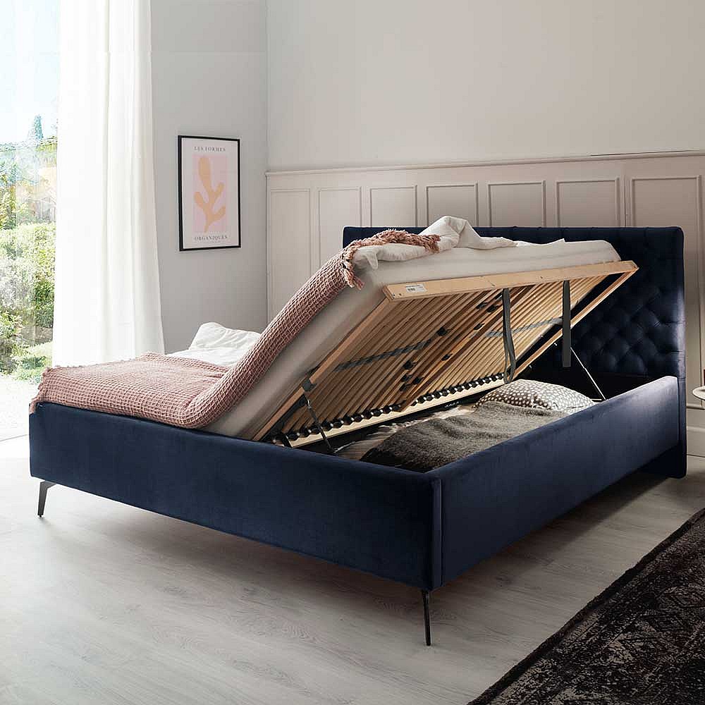 Polsterbett mit Lattenrosten und Bettkasten Dunkelblau