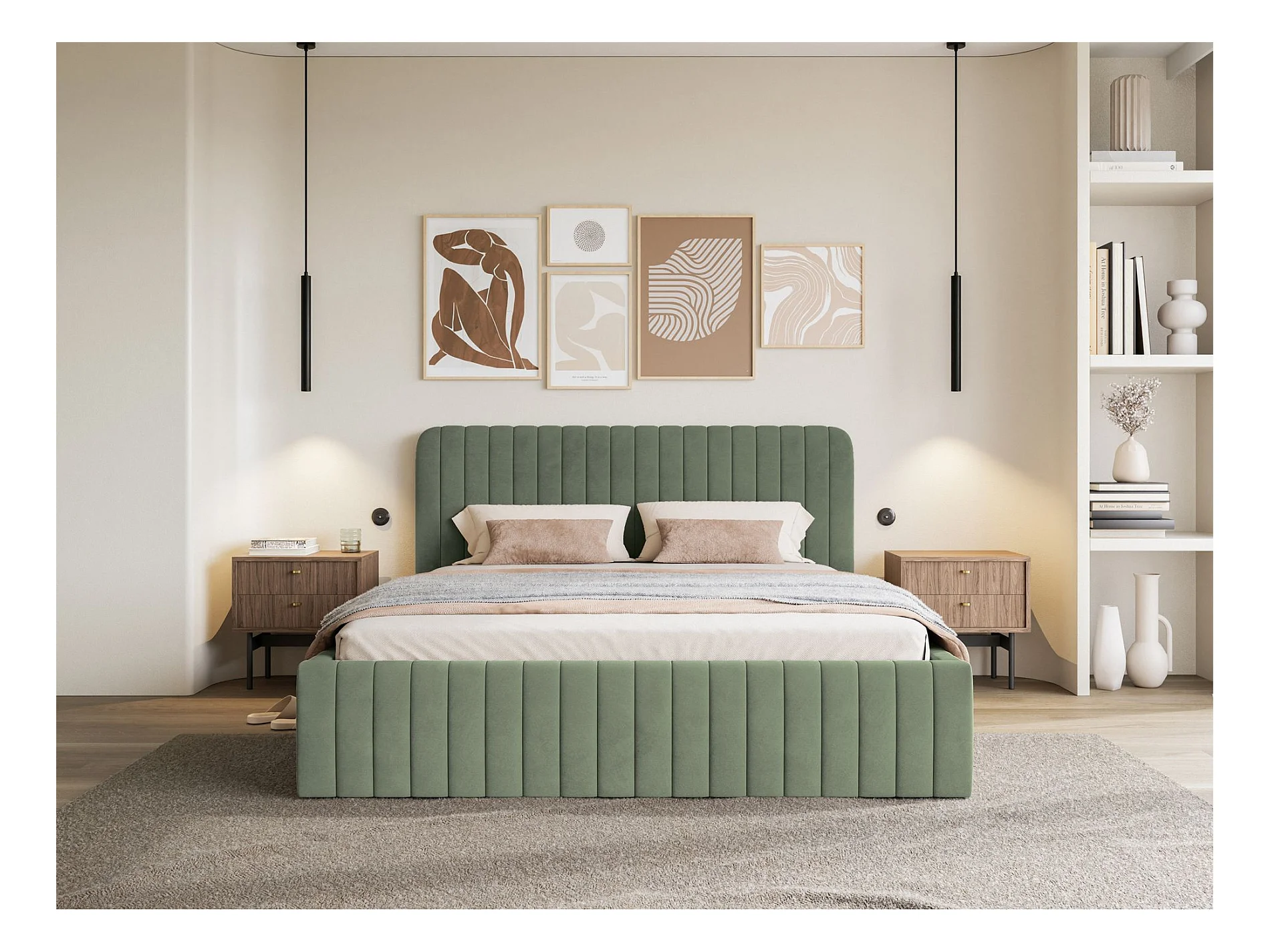 Polsterbett mit Samtbezug und Stauraum - Eukalyptusgrün - 140x200 cm - SALIANO