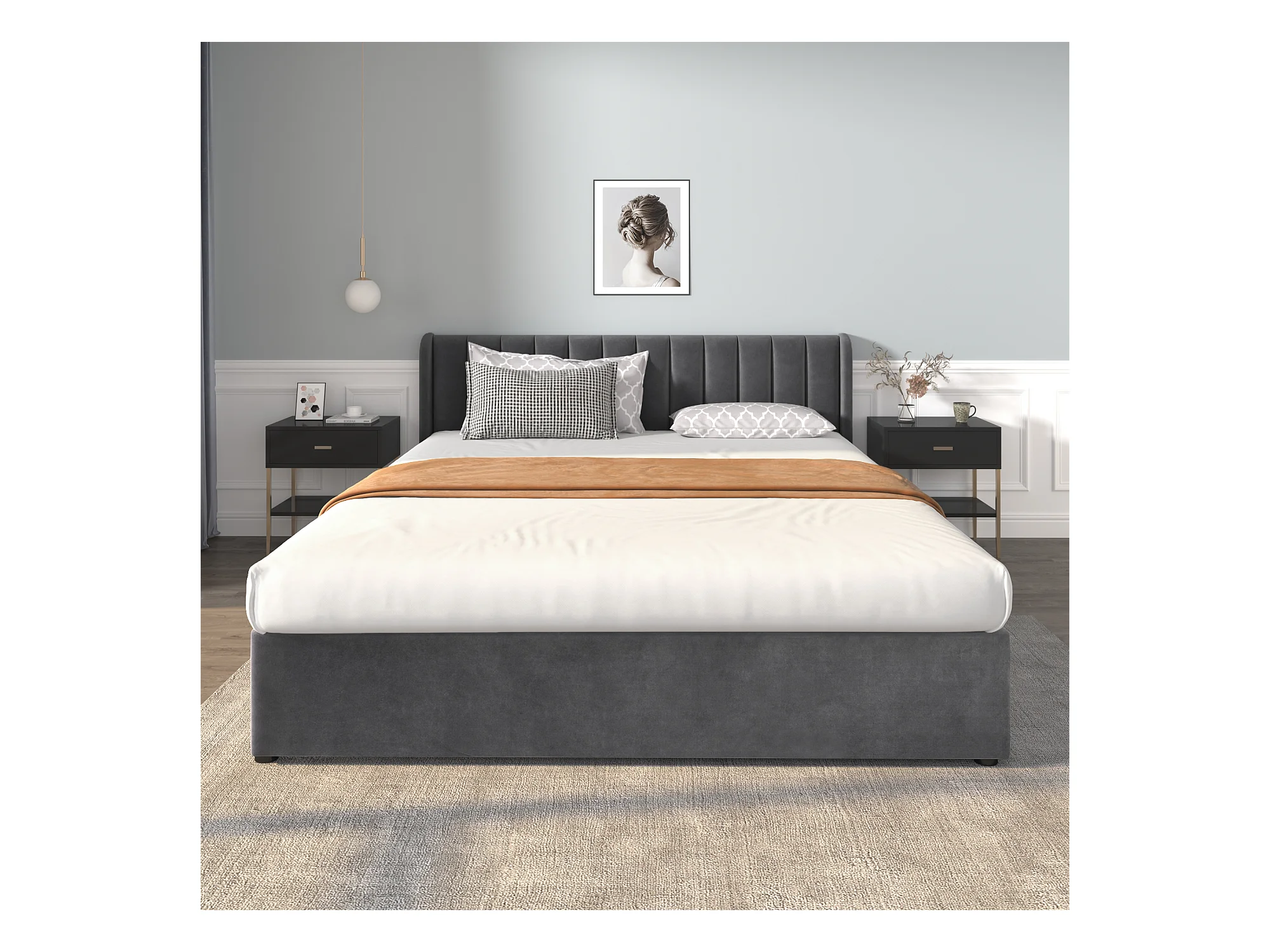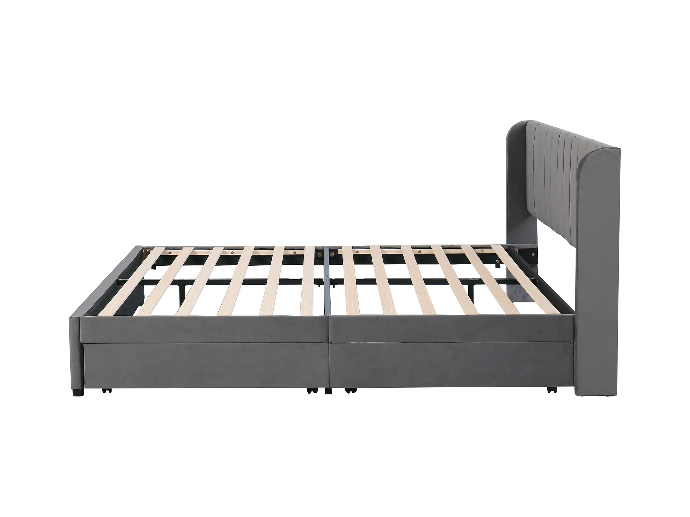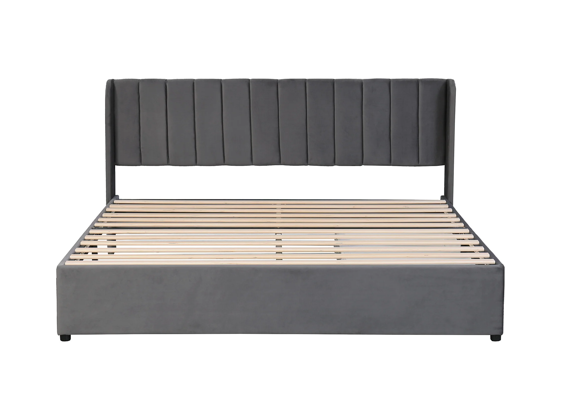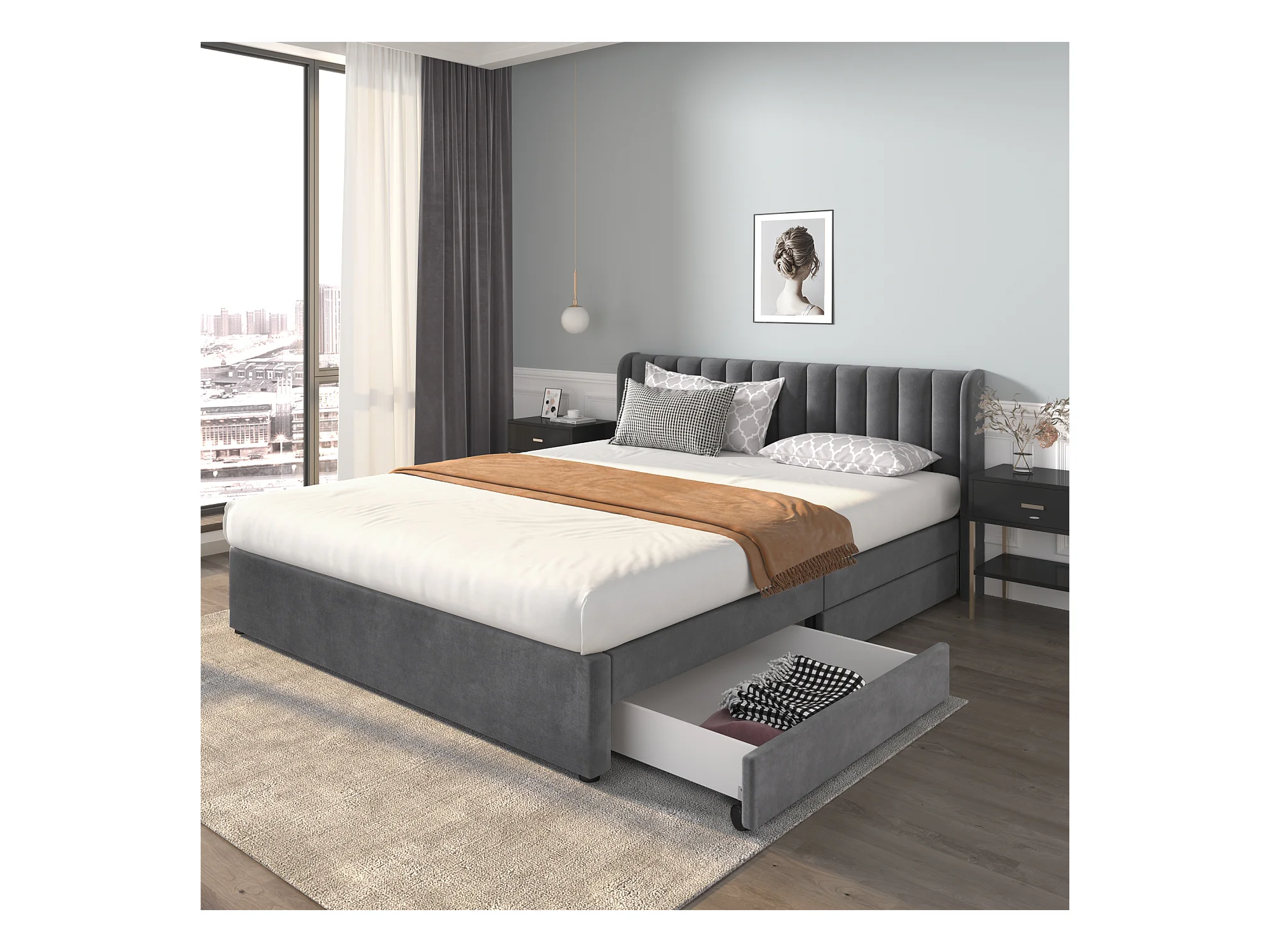 Polsterbett mit Stauraum - 180 x 200 cm - mit Lattenrost + Rückenlehne + 2 Schubladen - Samt - Grau