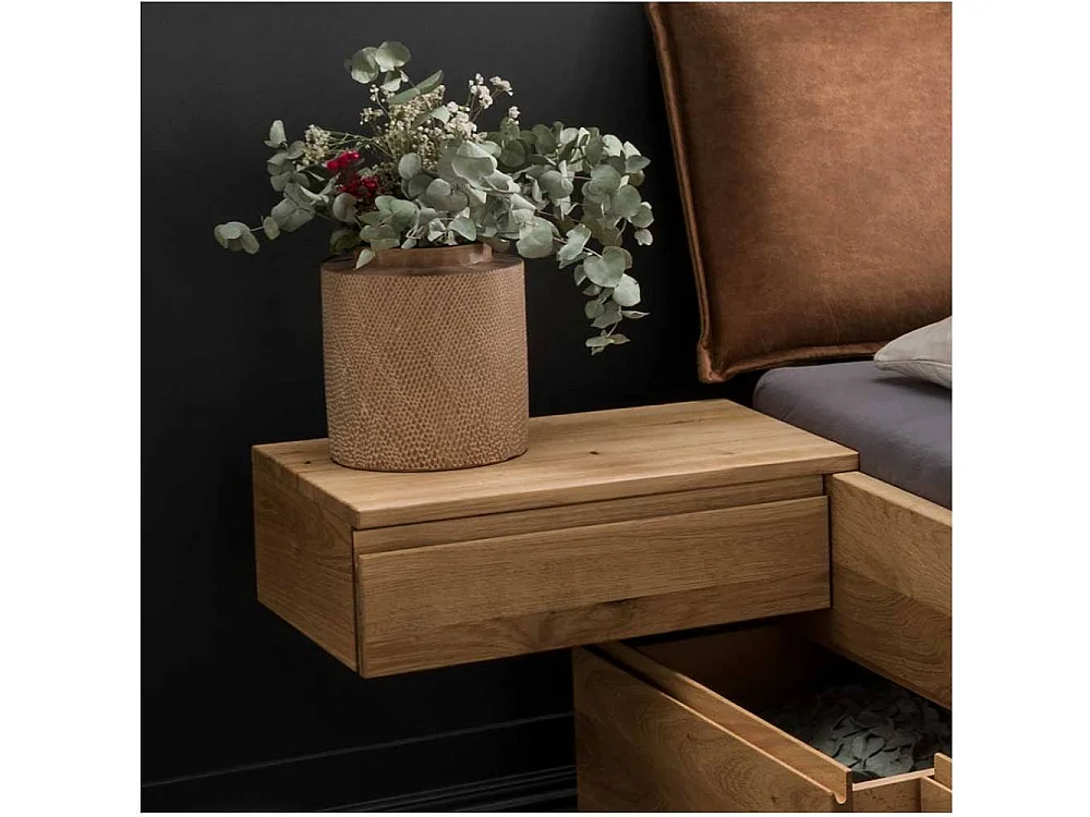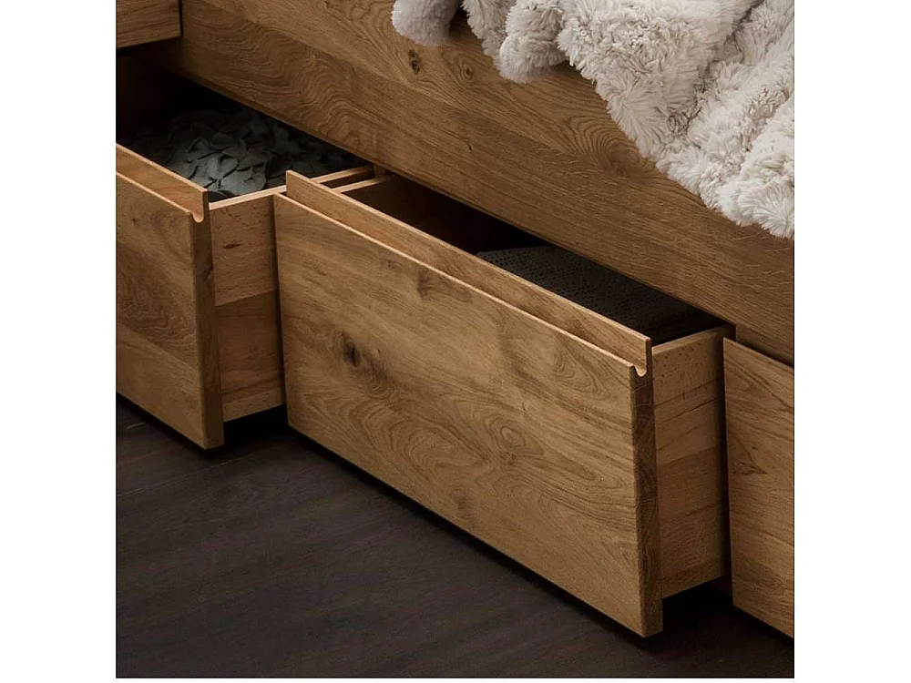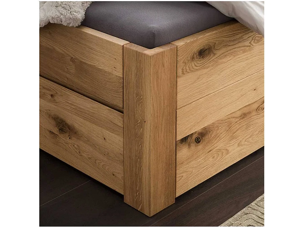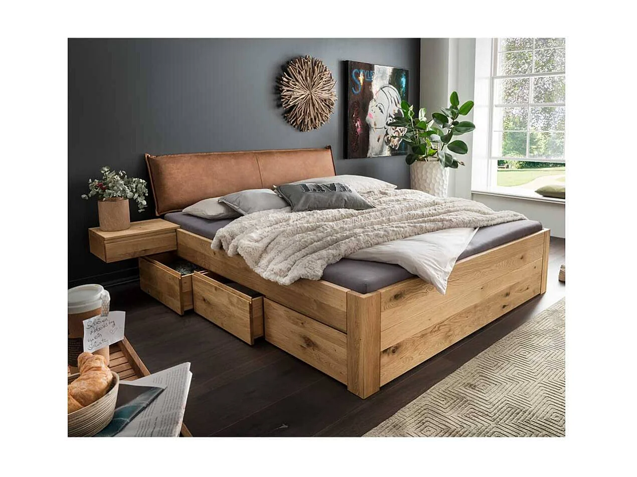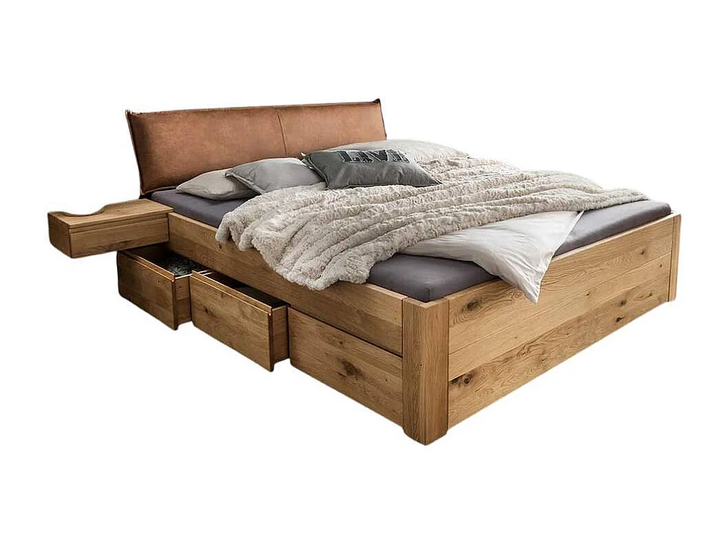 Polsterbett mit Stauraum Bettanlage aus Massivholz in Wildeiche geölt (dreiteilig)