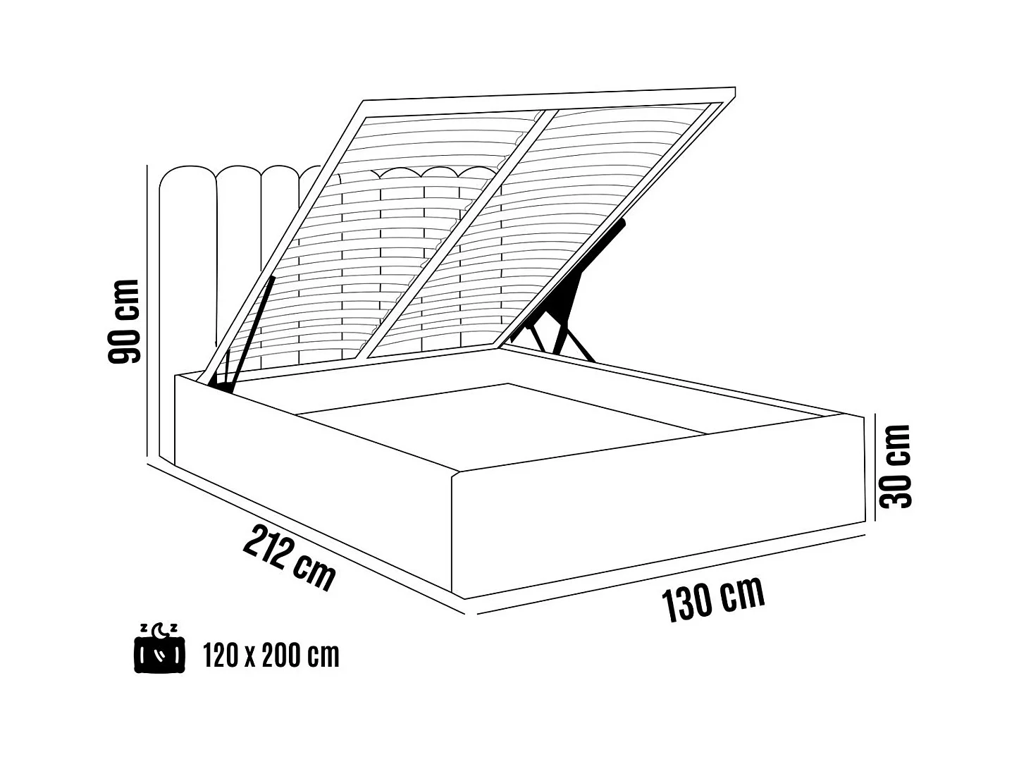 Polsterbett Montana 130x212x90 cm Liegefläche 120x200 cm, Bettkasten, Gasdruckfeder, Stoff Monolith Grün