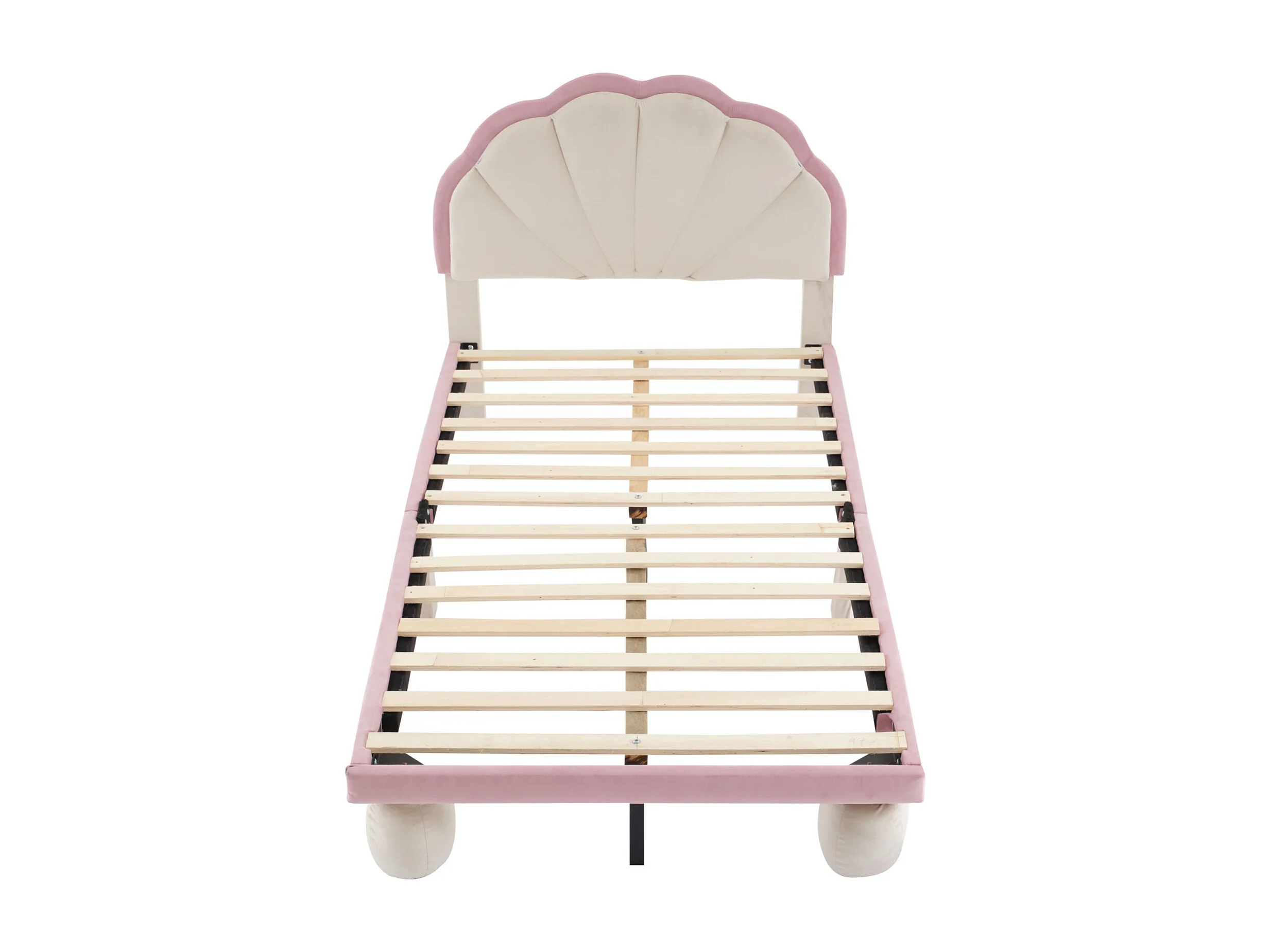 Polsterbett, Multicolor-LED, gewelltes Kopfteil, gepolsterte Beine, Samt, beige+pink, 90x200cm