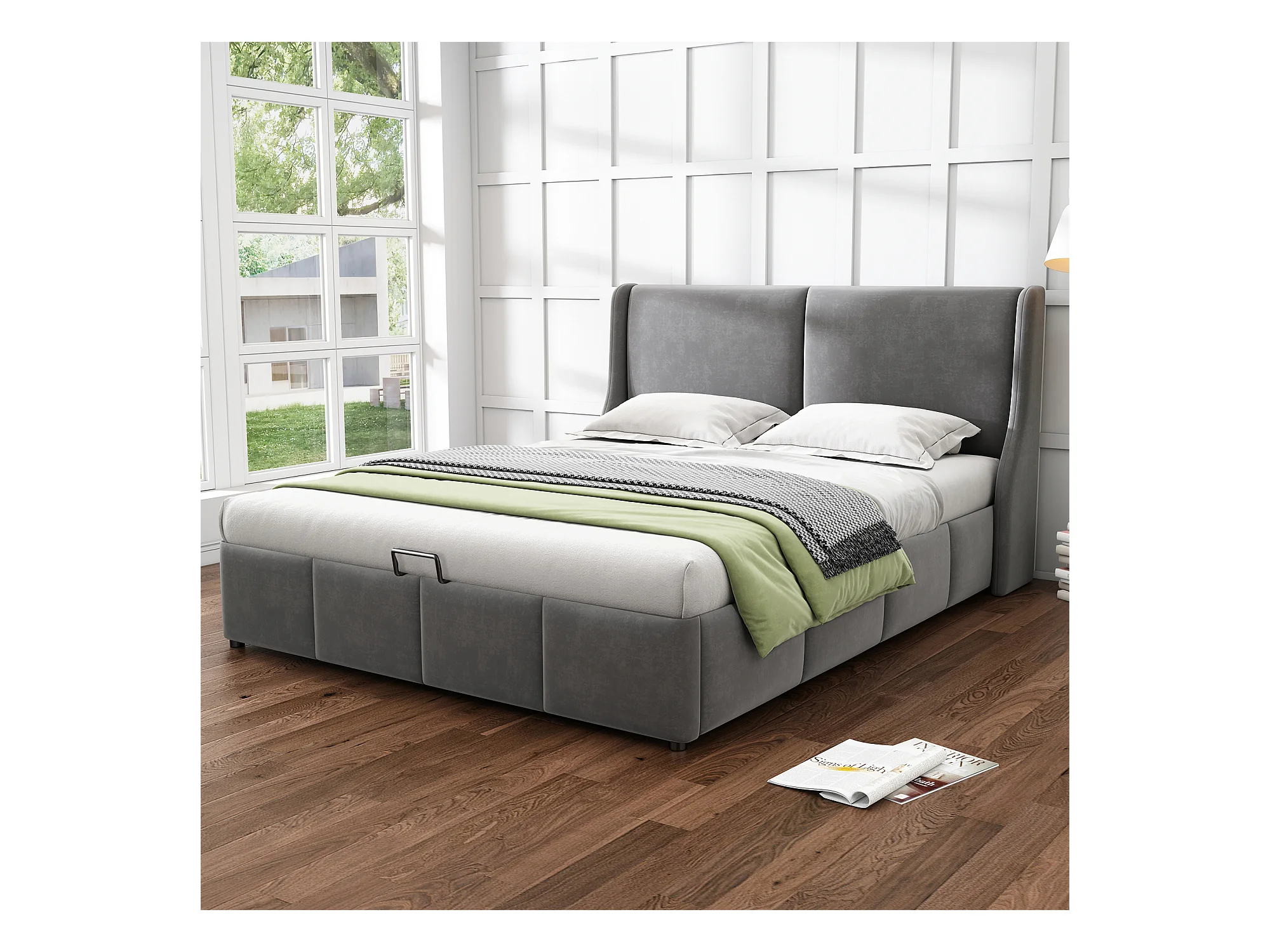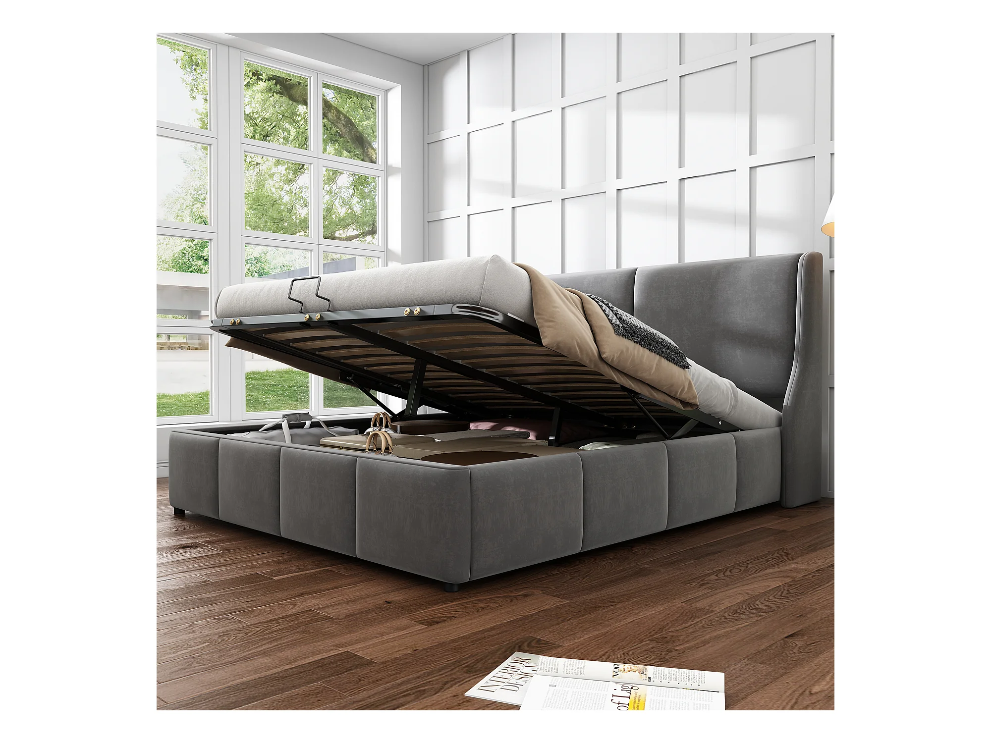 Polsterbett, Ohrenform, Kopfteil, Doppelbett, hydraulisches Funktionsbett, 140 x 190 cm