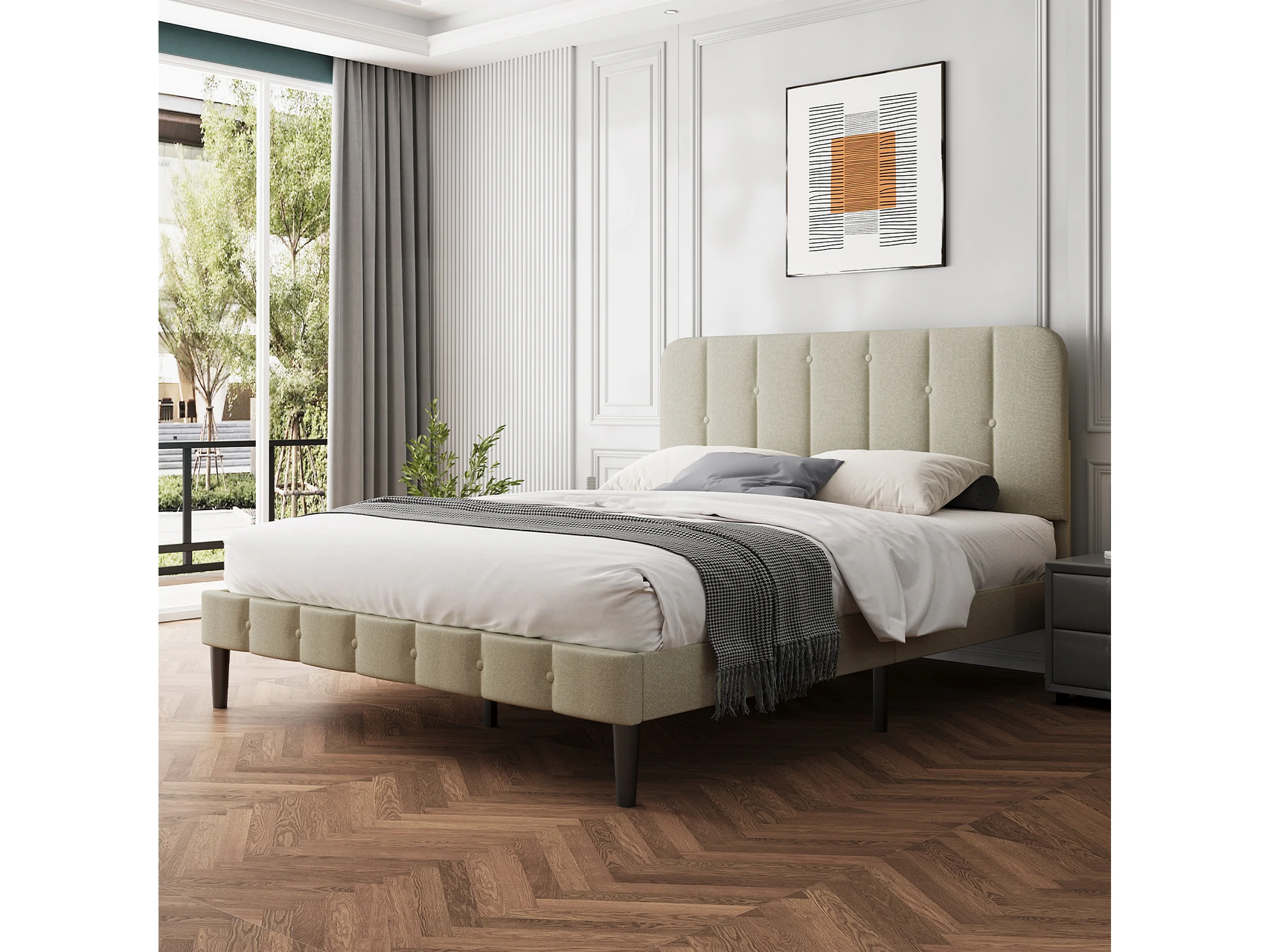 Polsterbett Polsterbett 140 x 200 cm mit Lattenrost - Doppelbett Bettrahmen mit Kopfteil - Gepolstertes Bett Bettrahmen