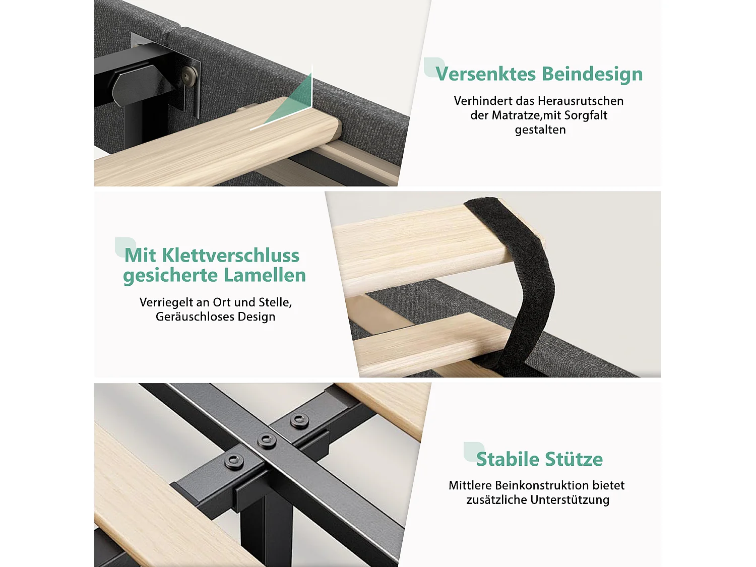 Polsterbett Polsterbett 140 x 200 cm mit Lattenrost - Doppelbett Bettrahmen mit Kopfteil - Gepolstertes Bett Bettrahmen