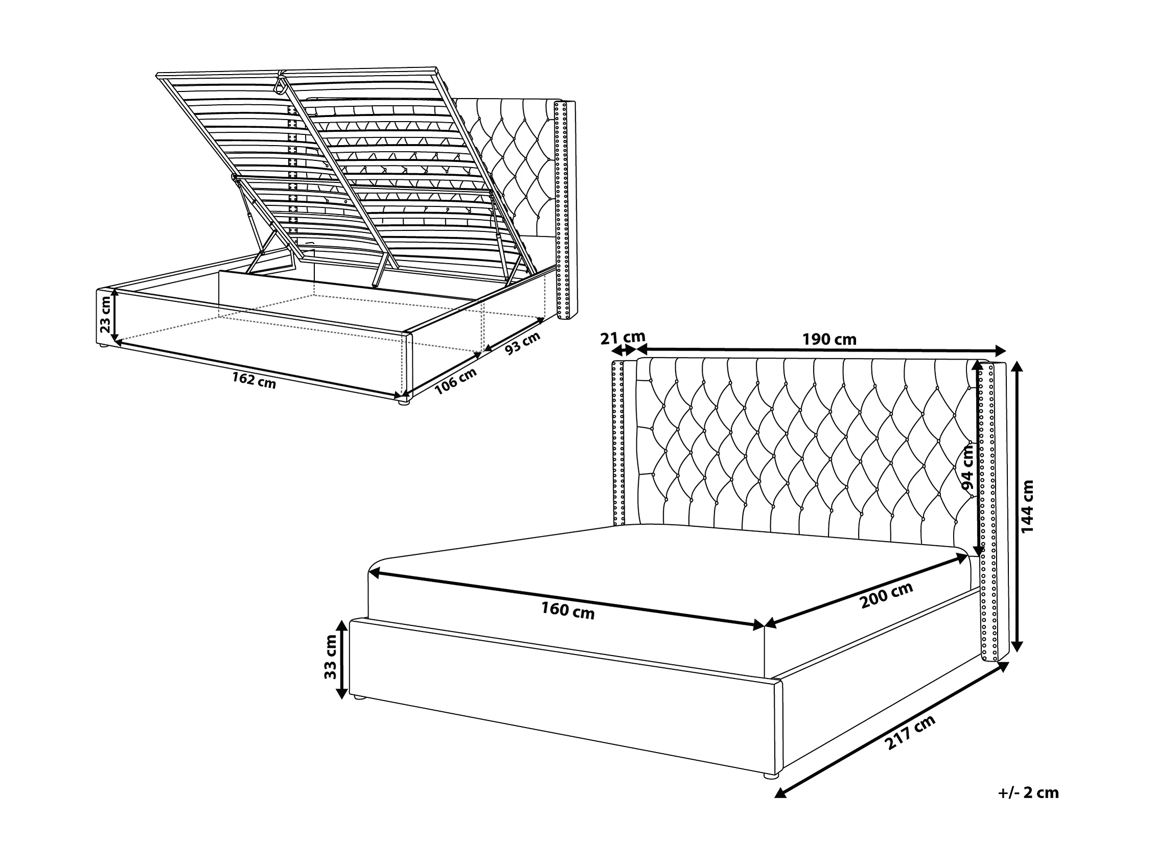 Bequemes Bett Samtstoff hohes Kopfteil in Beige 160 x 200 cm Bettkasten Lubbon