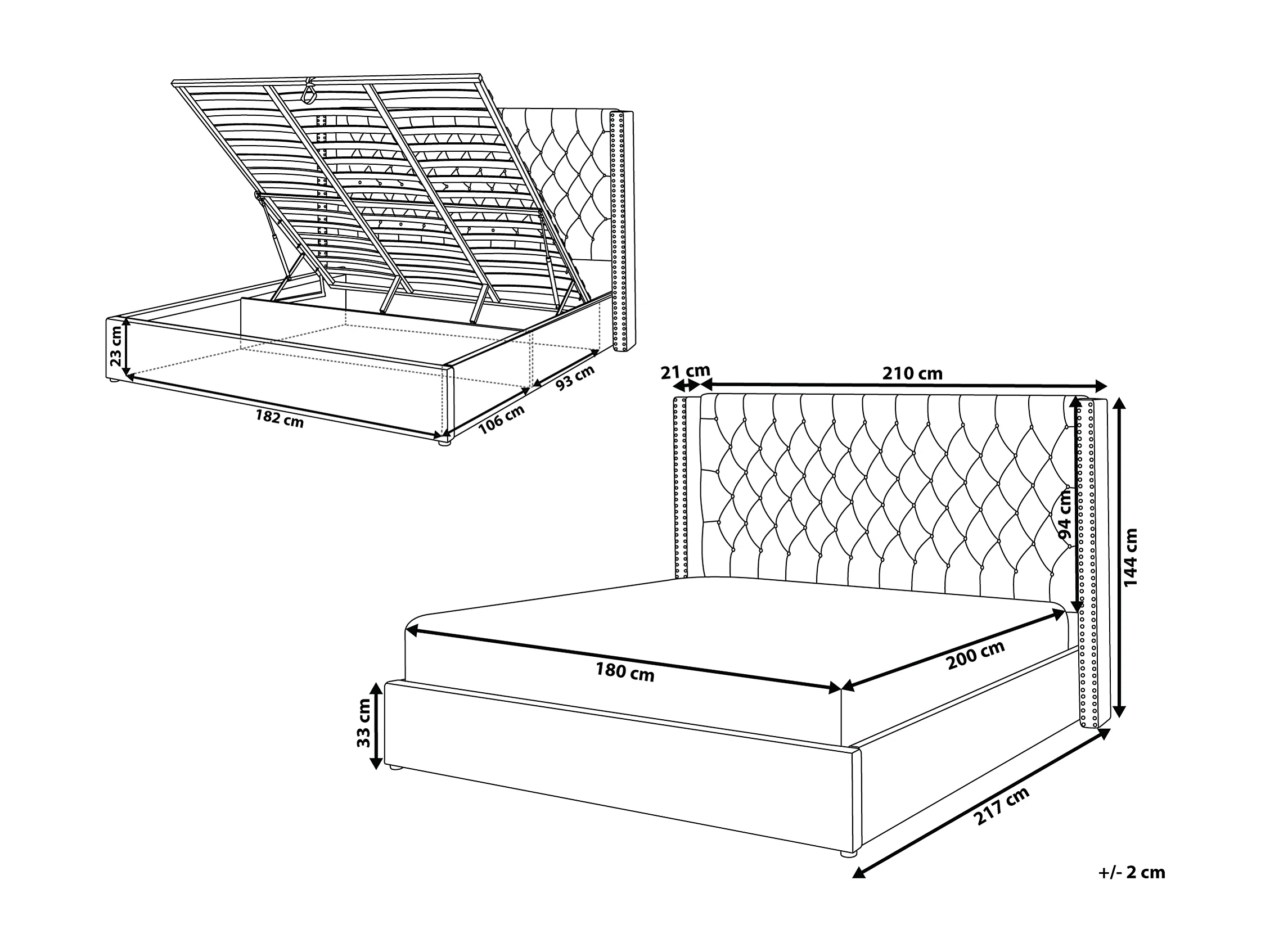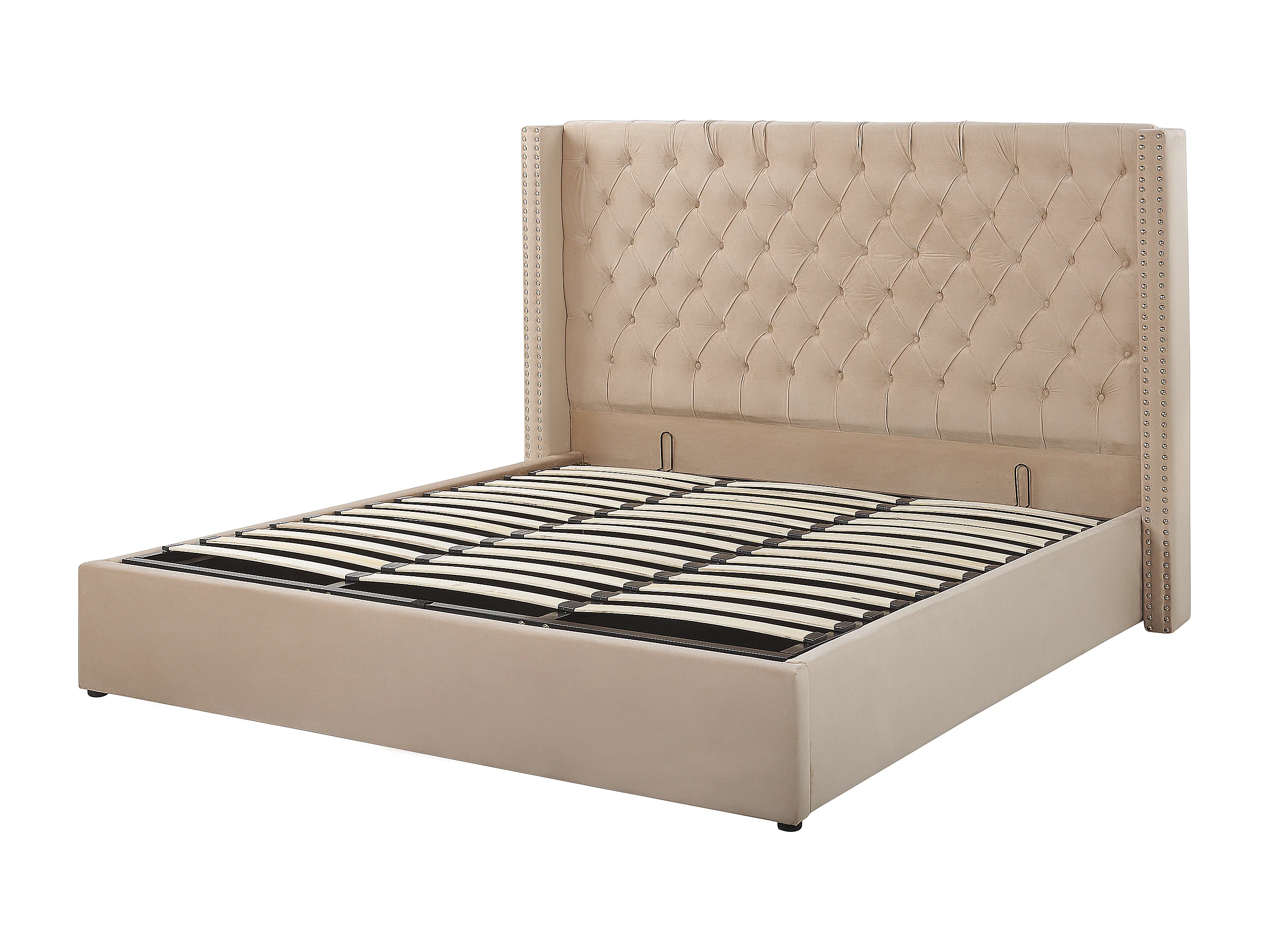 Bequemes Bett Samtstoff hohes Kopfteil in Beige 180 x 200 cm Bettkasten Lubbon
