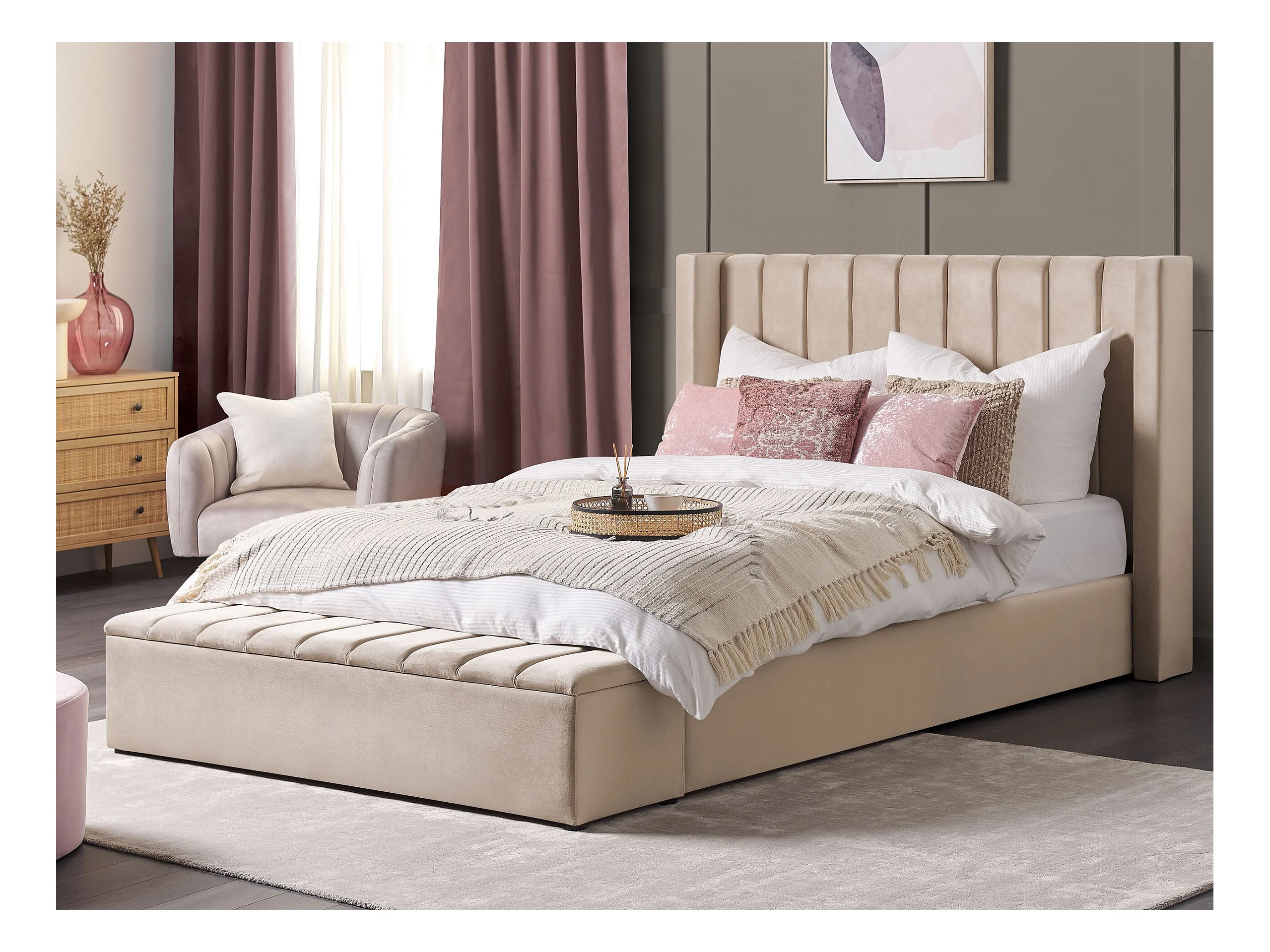 Luxuriöses Bett Samtstoff zusätzlicher Staumraum 180 x 200 cm beige Noyers