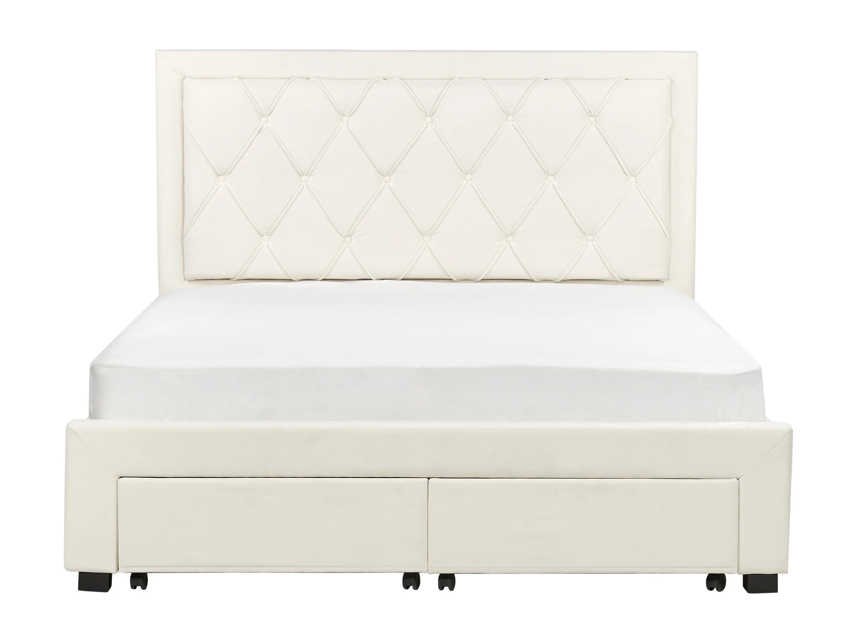 Bett Samt beige creme Schubladen Lattenrost 160x200 cm Chesterfield Stil Lievin