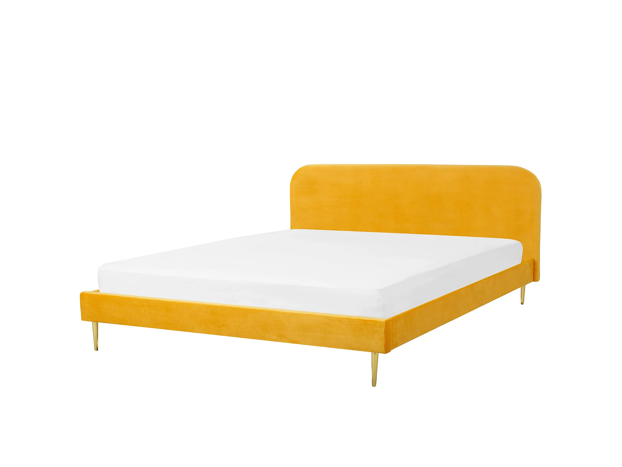 Polsterbett Samtstoff gelb mit Lattenrost 180 x 200 cm Metallfüße gold Flayat