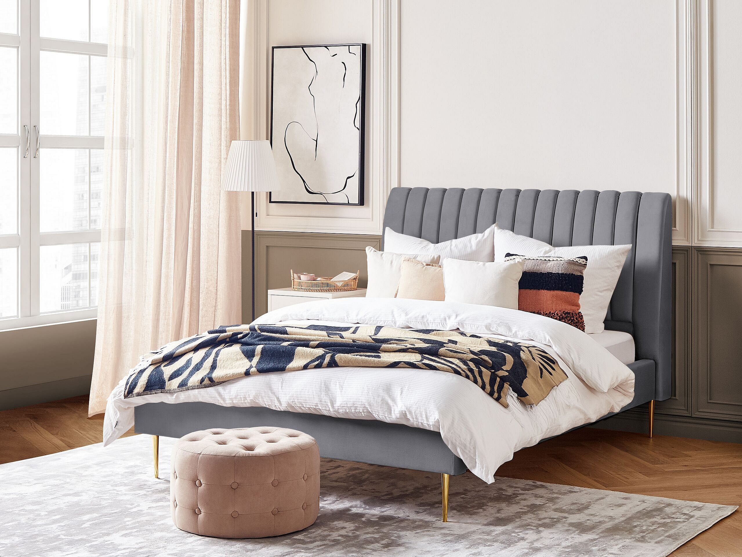 Elegantes Doppelbett grau aus Samtstoff 140 x 200 cm Marville