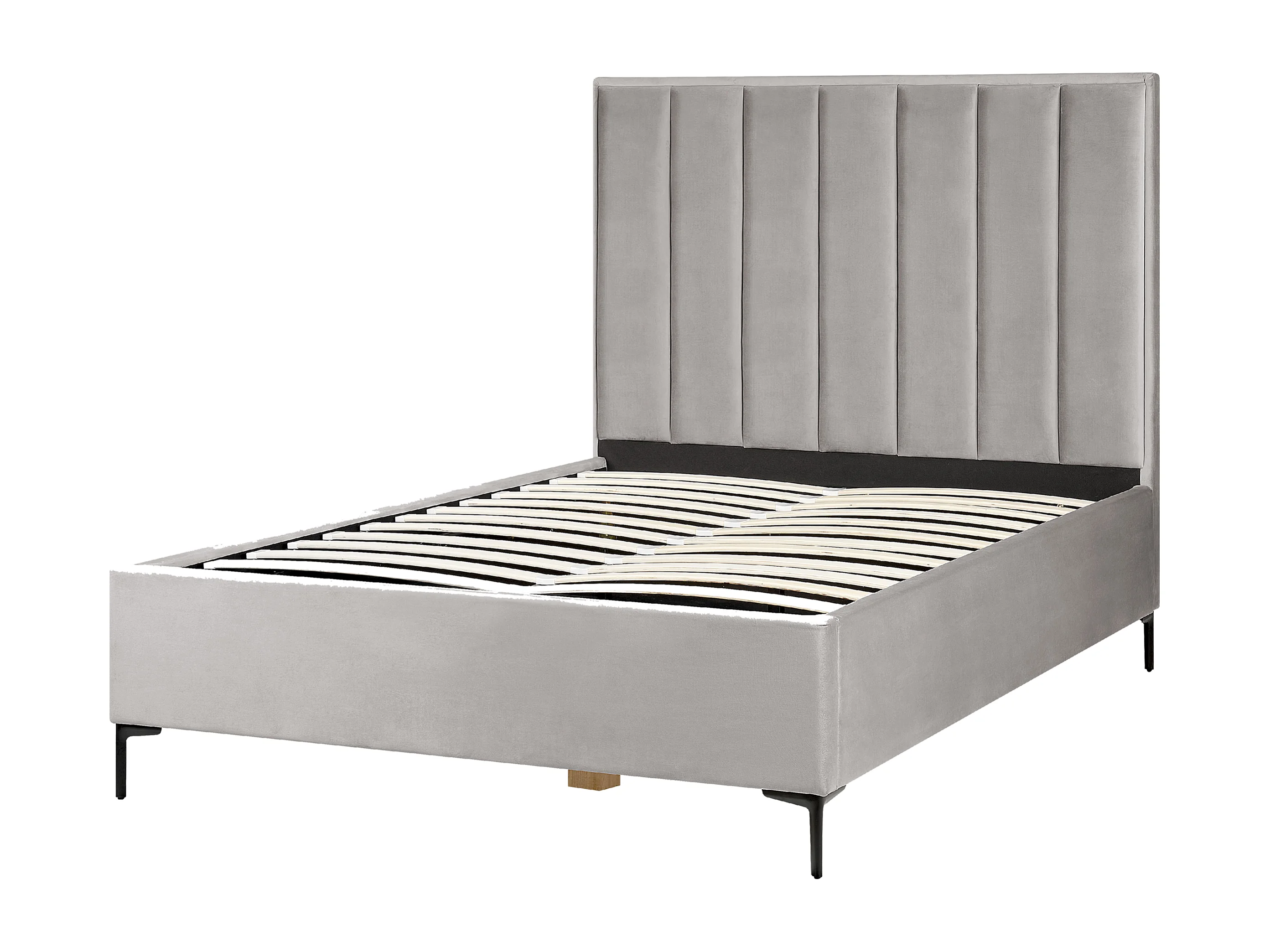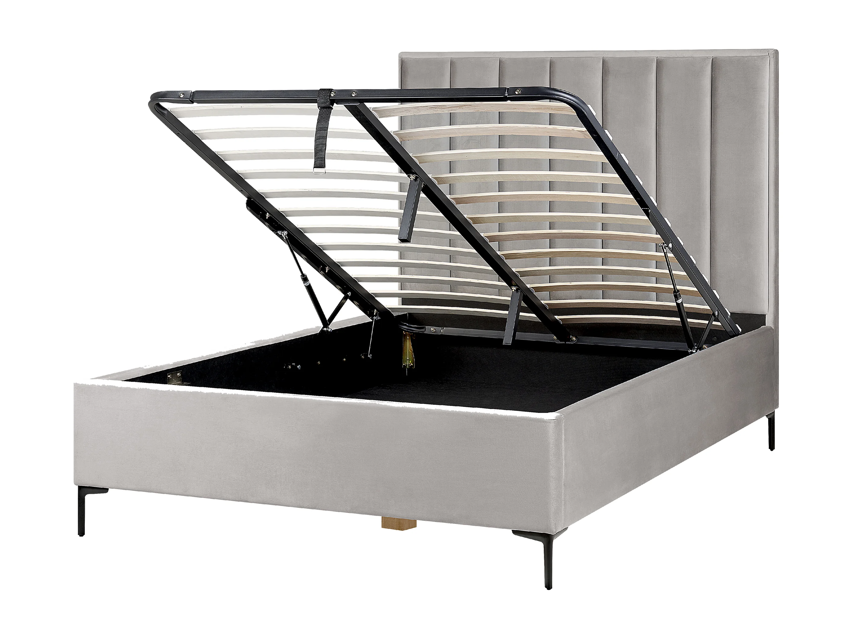Polsterbett Samtstoff Grau 140x200 cm mit Bettkasten hochklappbar Sezanne