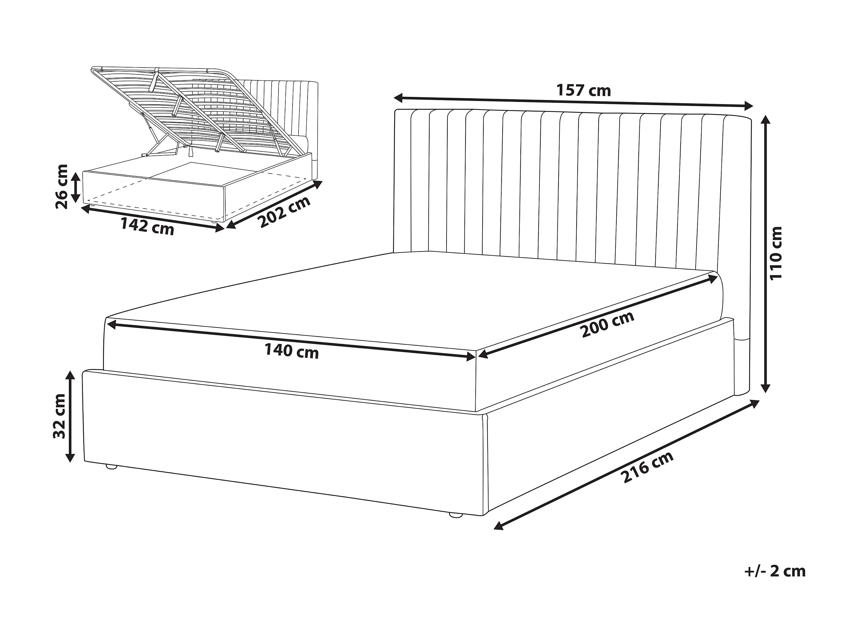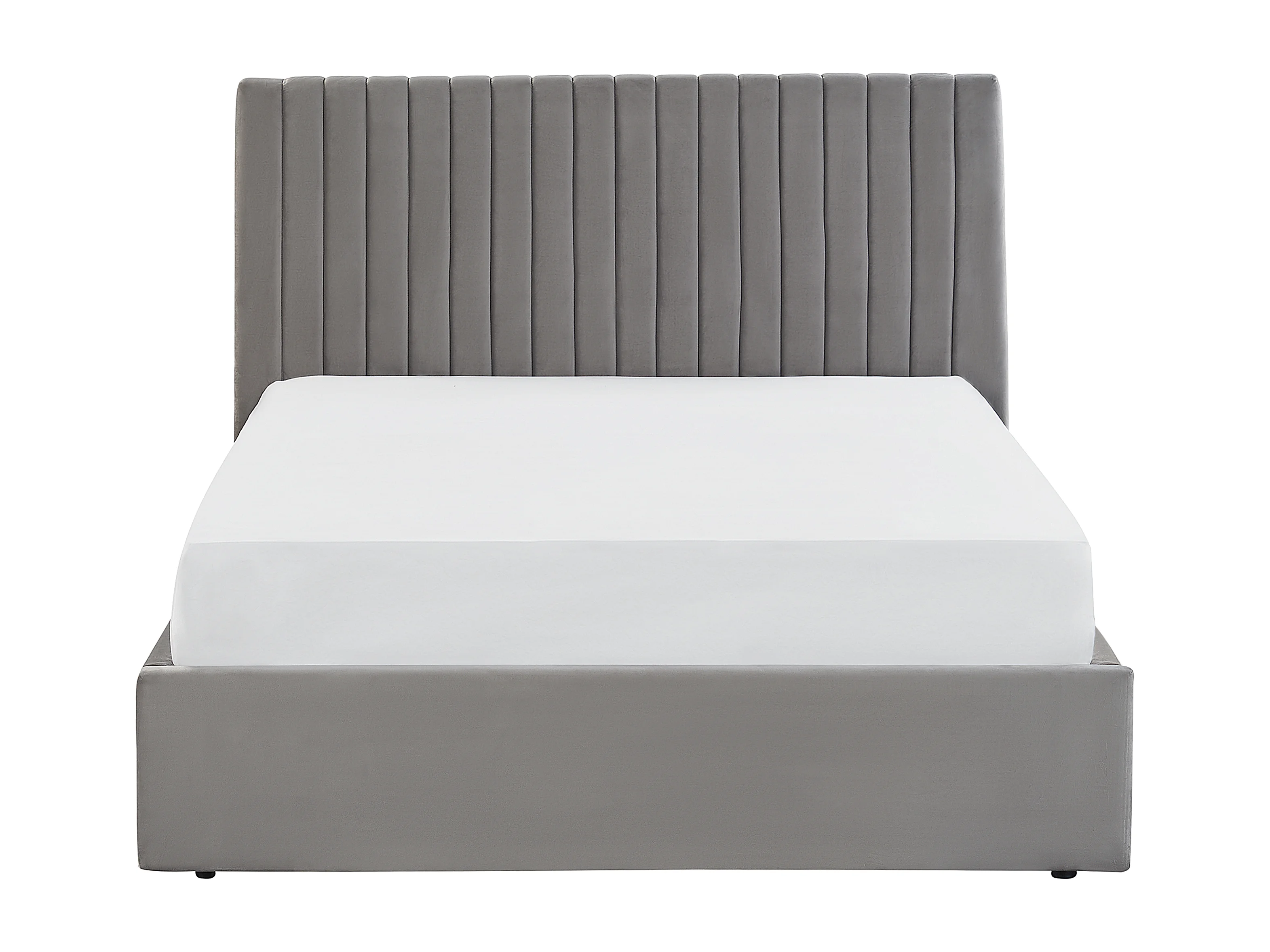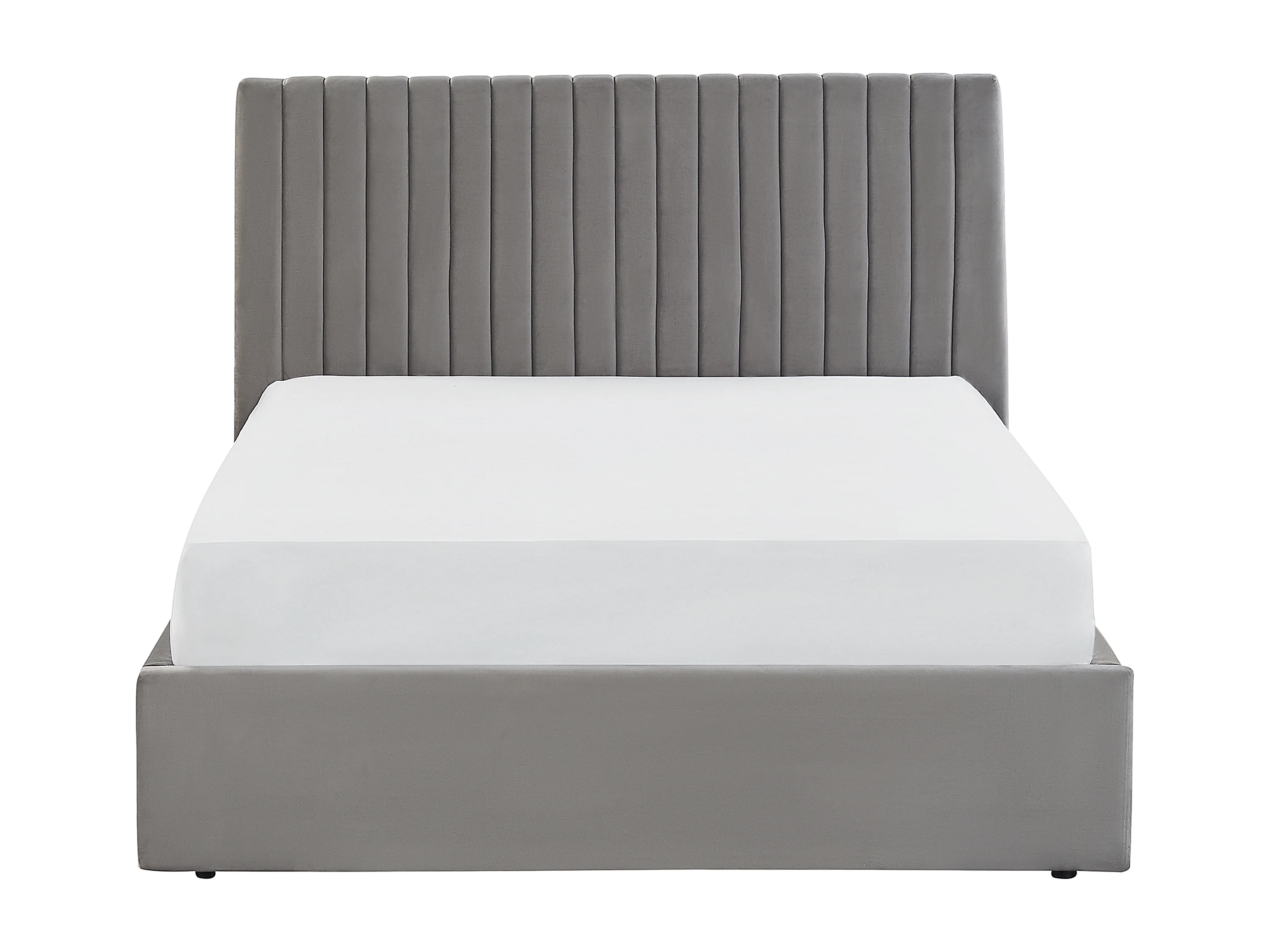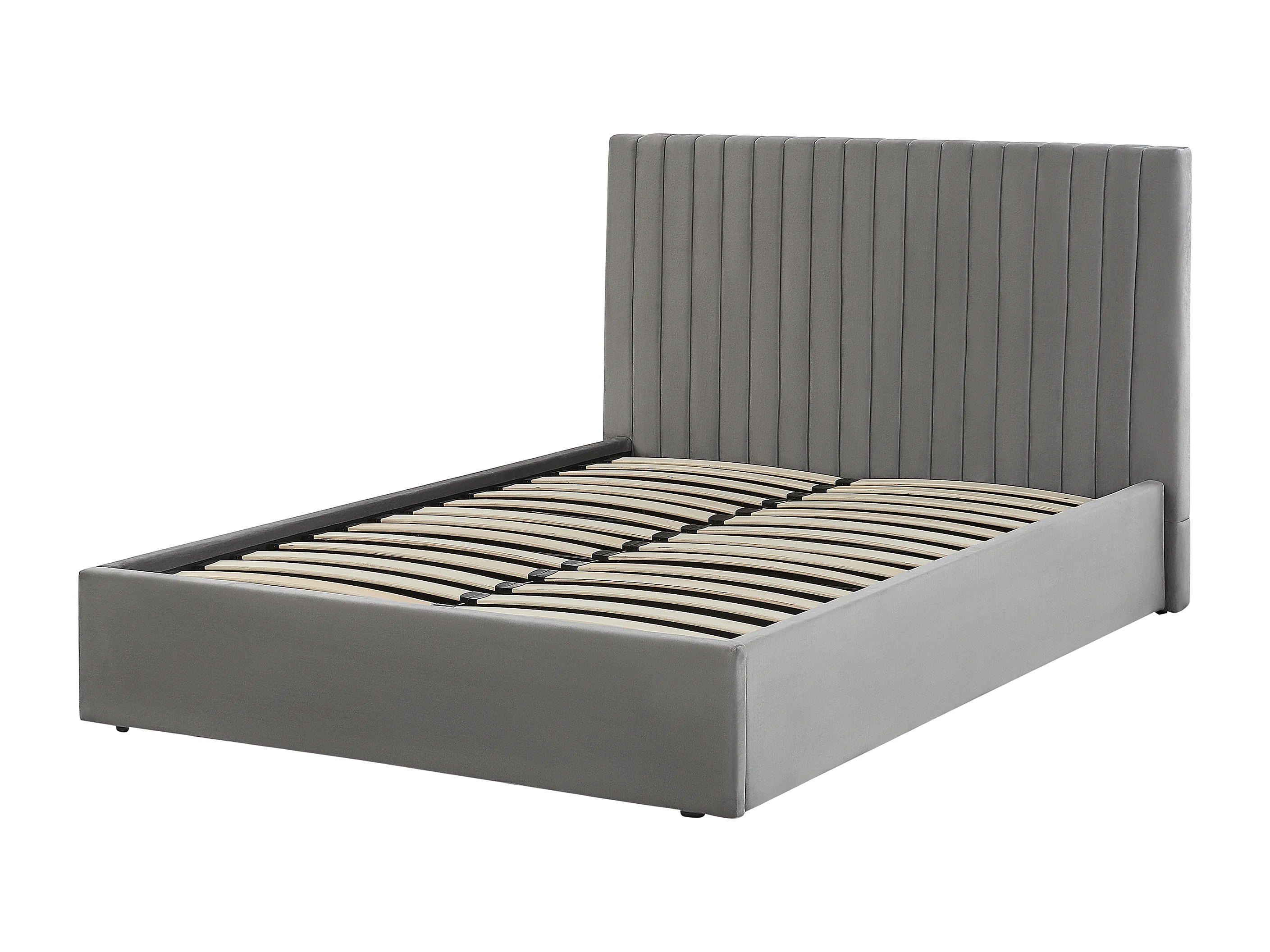 Polsterbett Samtstoff grau 140 x 200 cm mit Stauraum gestepptes Kopfteil Vion