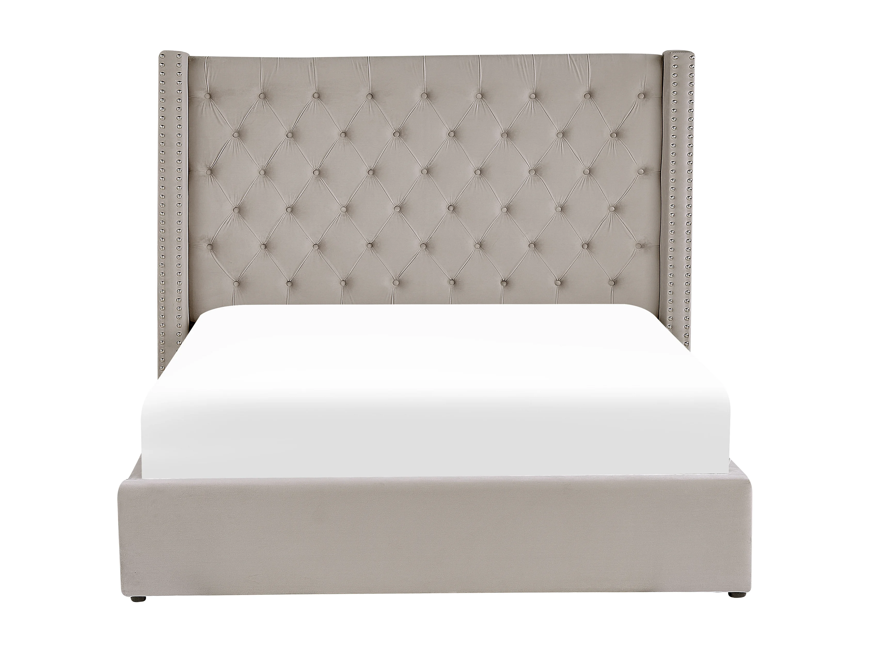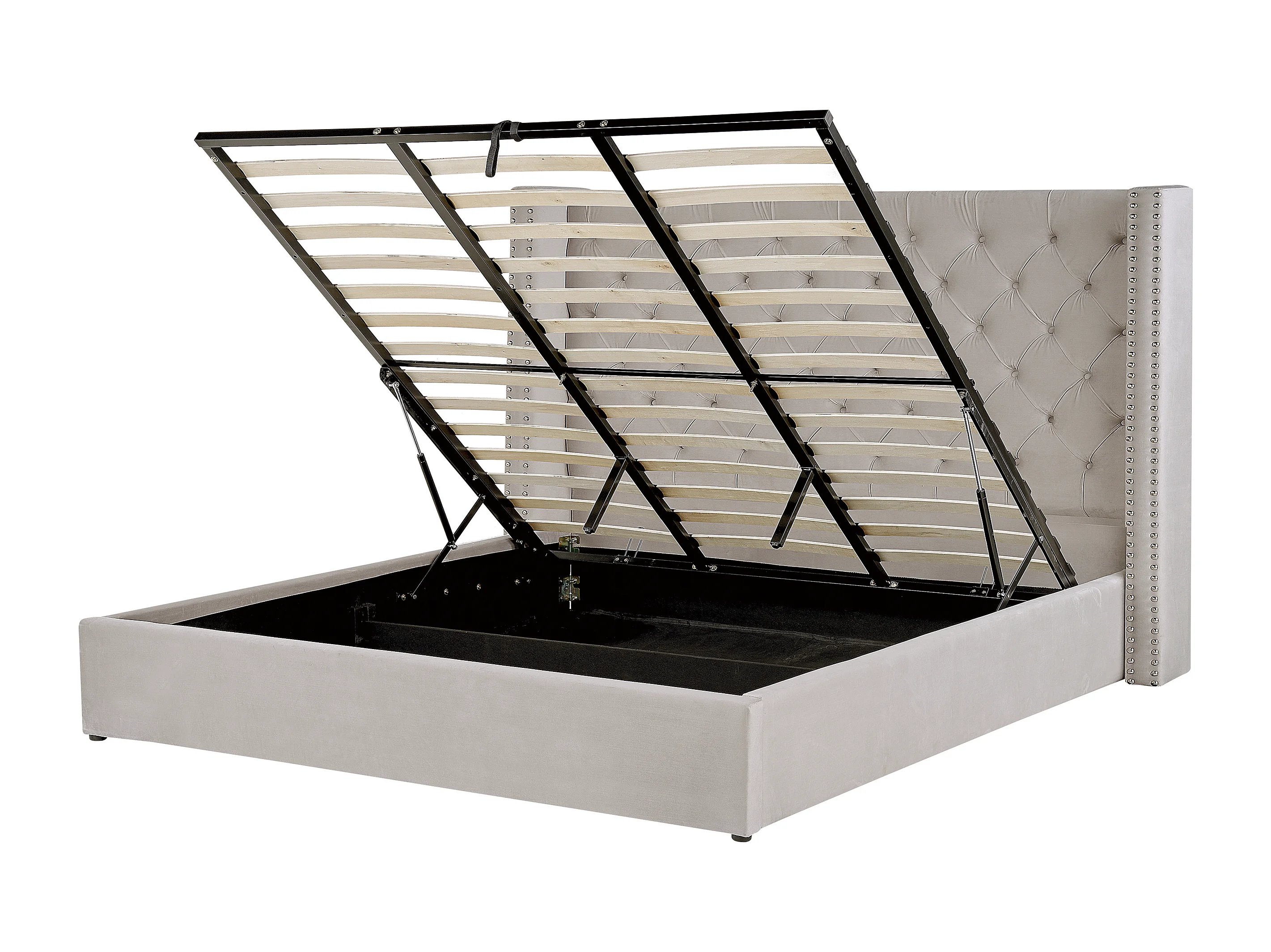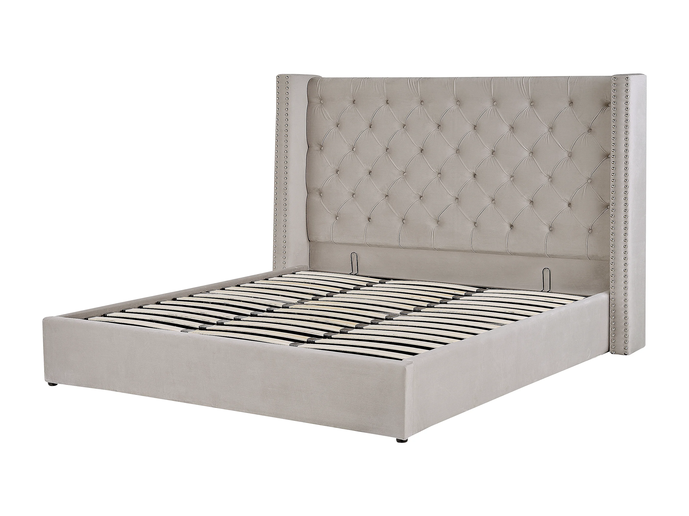 Polsterbett Samtstoff hohes Kopfteil helles Grau 180 x 200 cm Bettkasten Lubbon