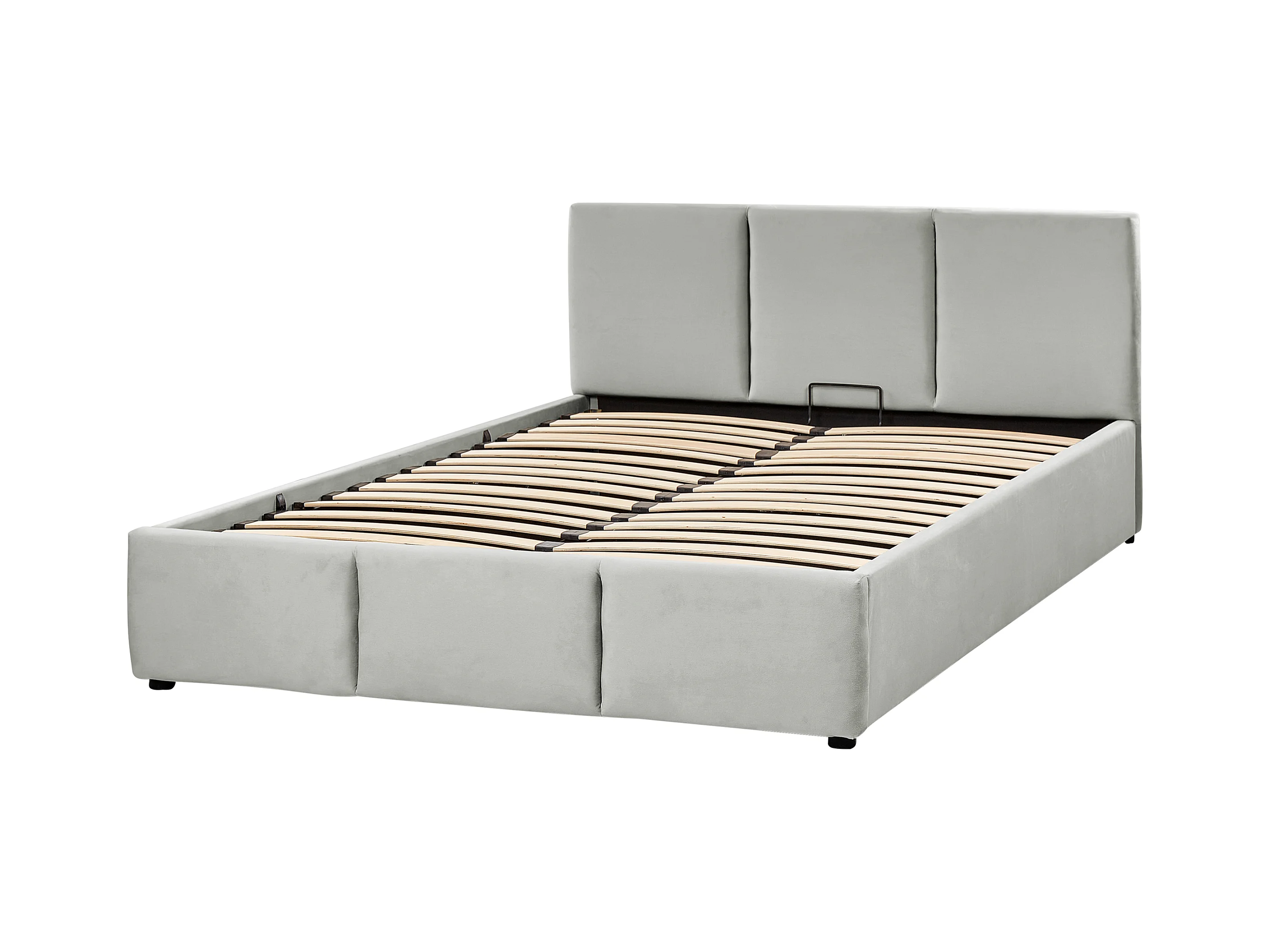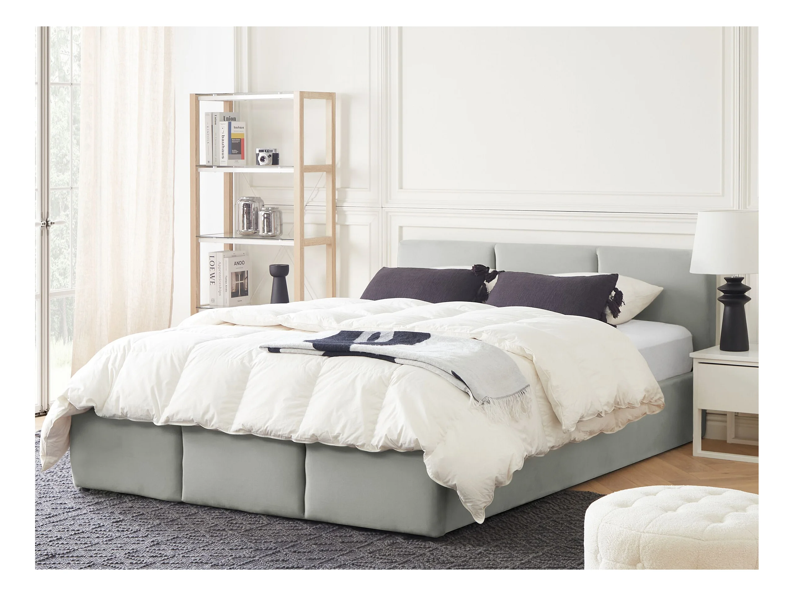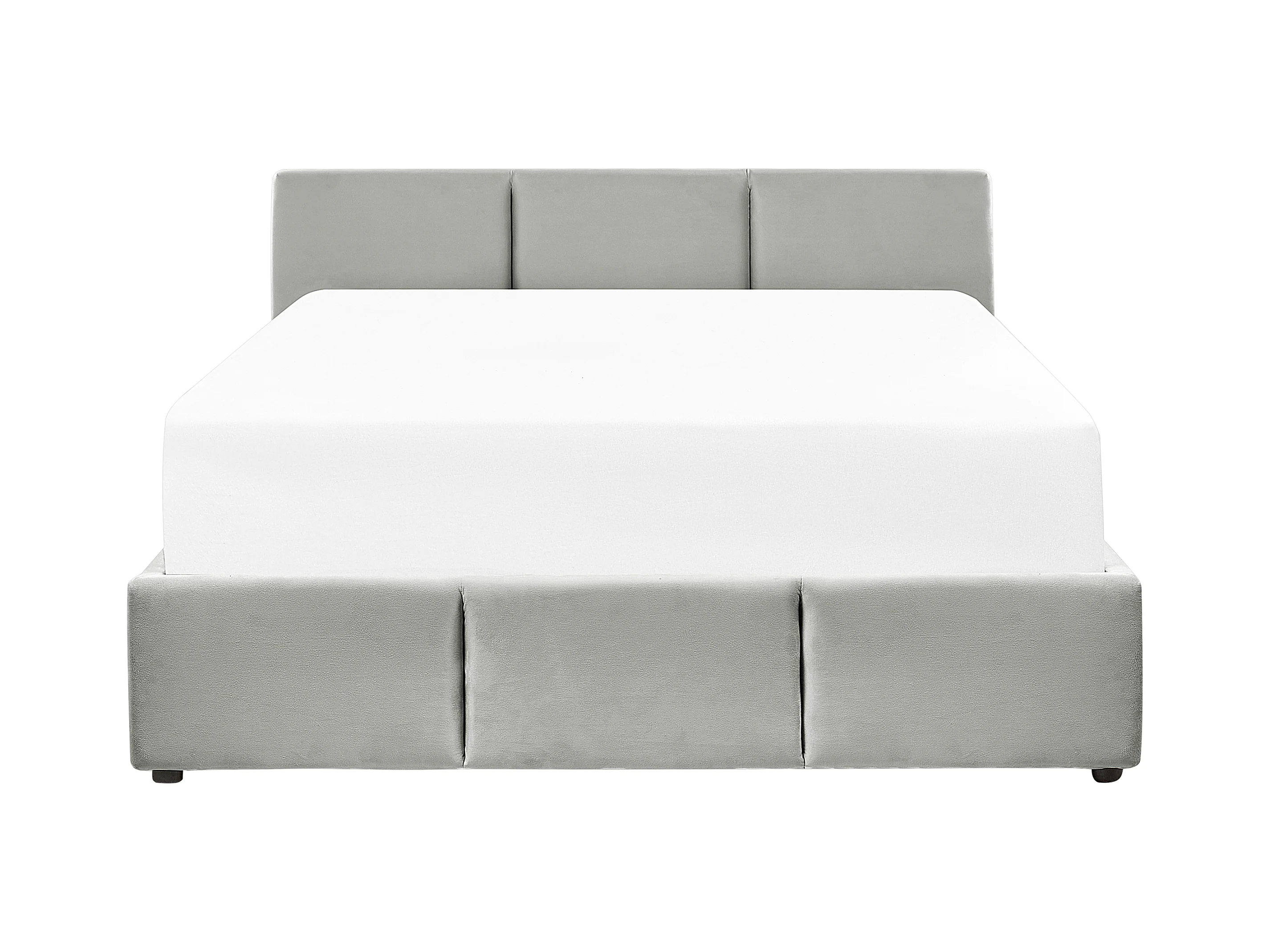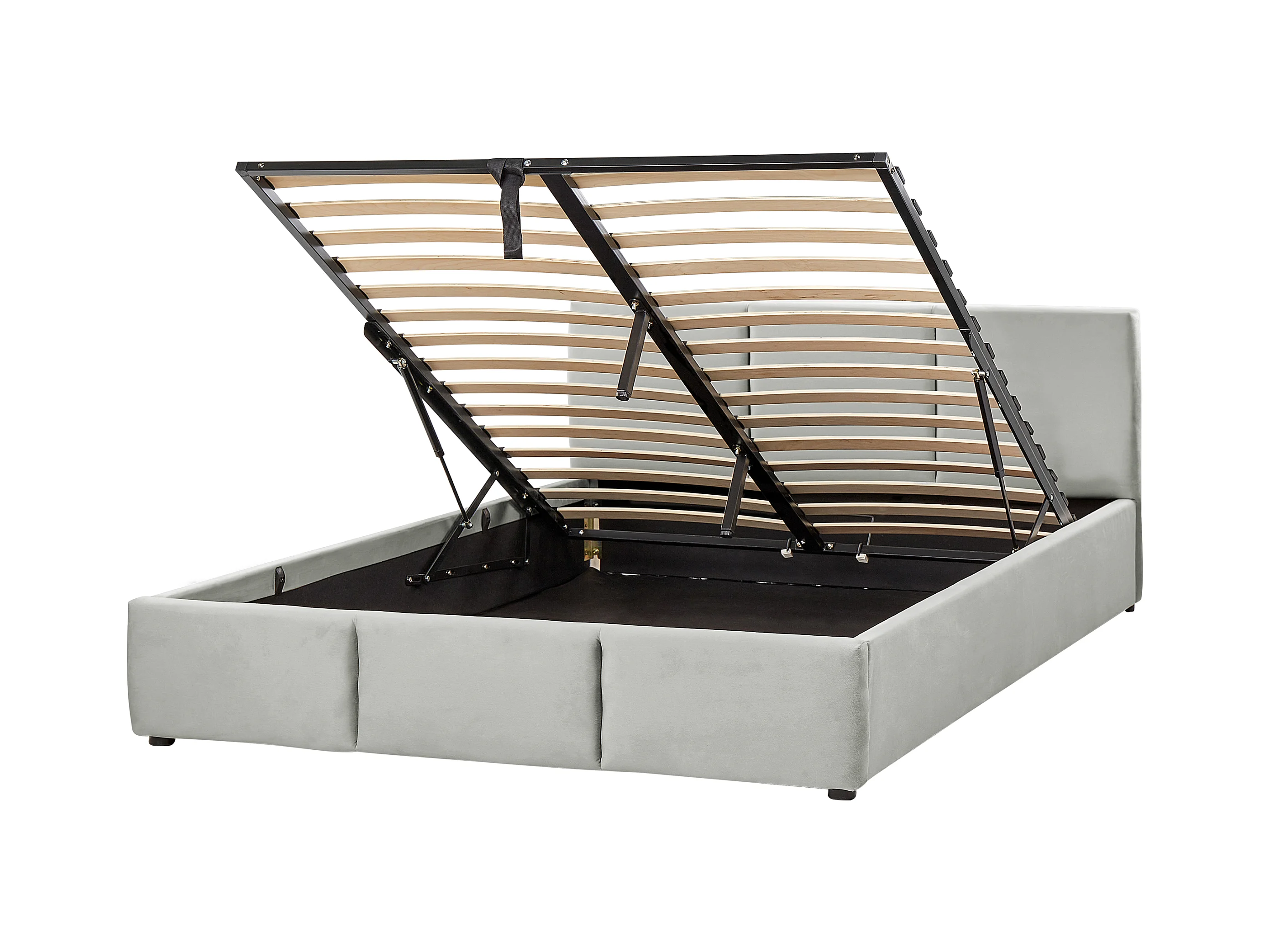 Bett Samt helles Grau mit hohem Kopfteil Lattenrost 160x200 cm Bettkasten Bousse