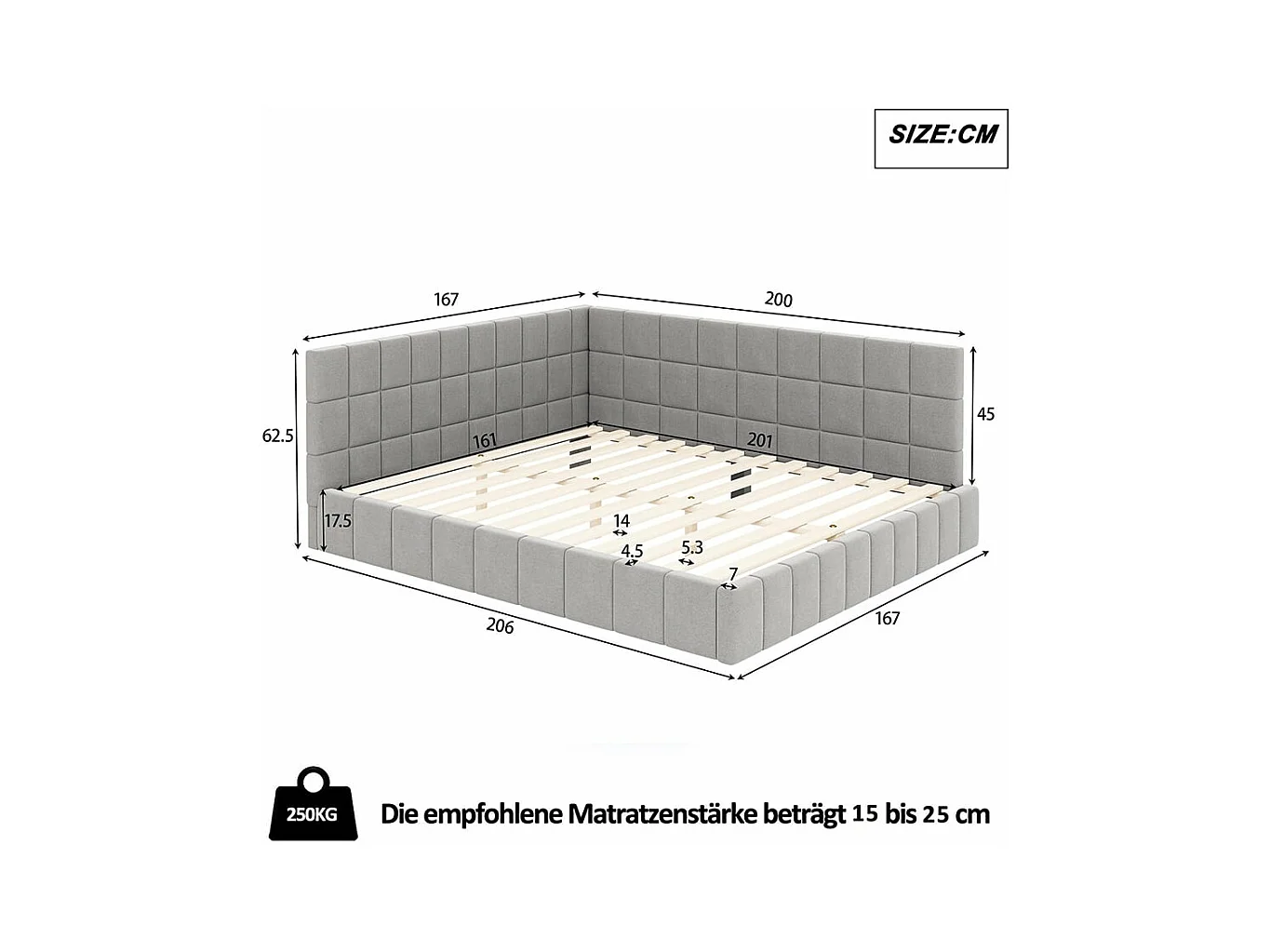 Polsterbett, Schlafsofa 160*200 Multifunktionsbett mit Lattenrost, hautfreundlicher Samtstoff Grau