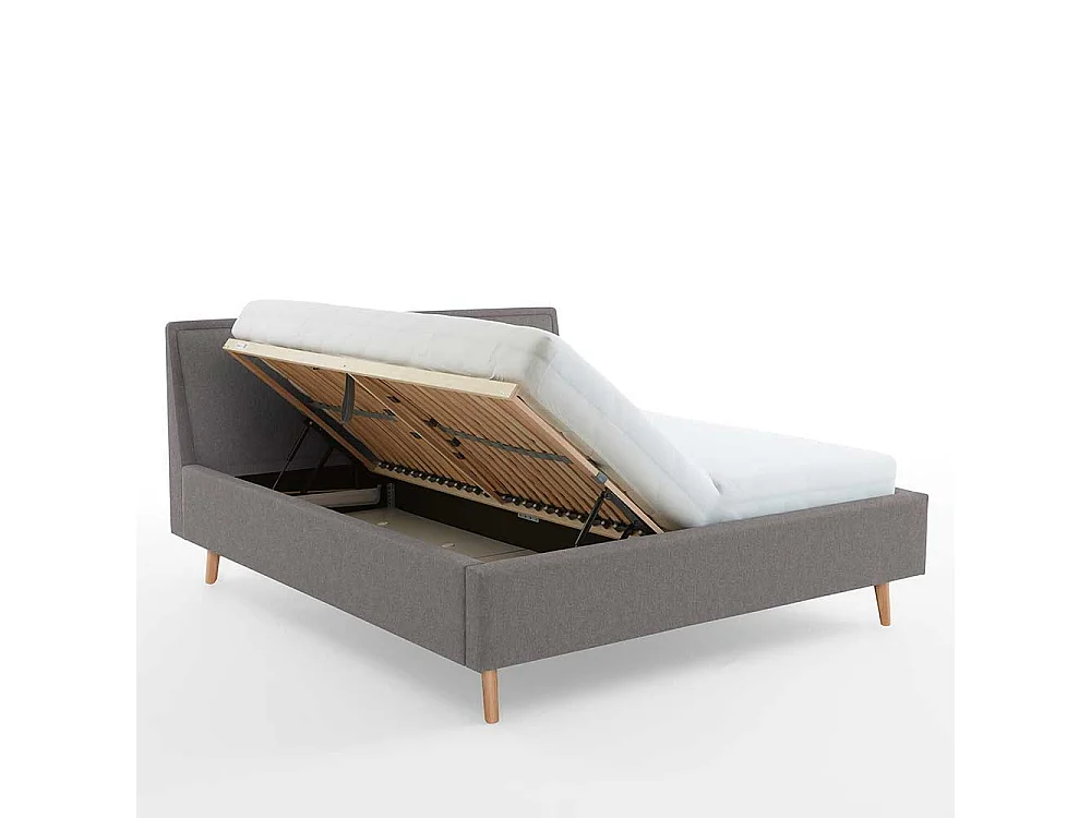 Polsterbett Skandi in Hellgrau Vierfußgestell aus Holz