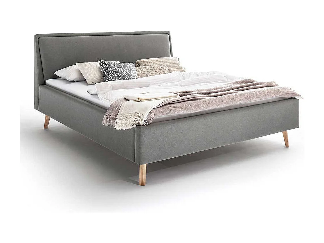 Polsterbett Skandi in Hellgrau Vierfußgestell aus Holz