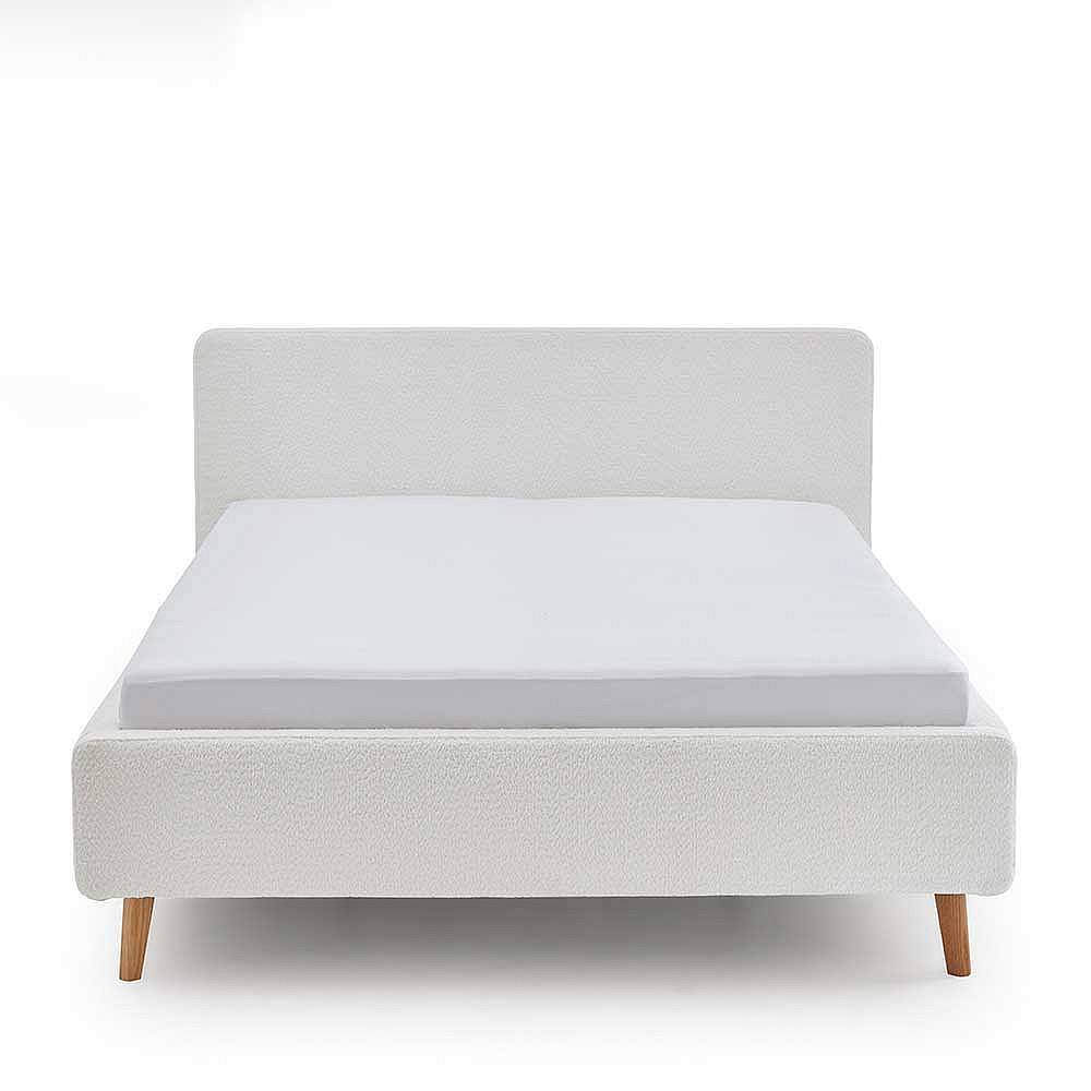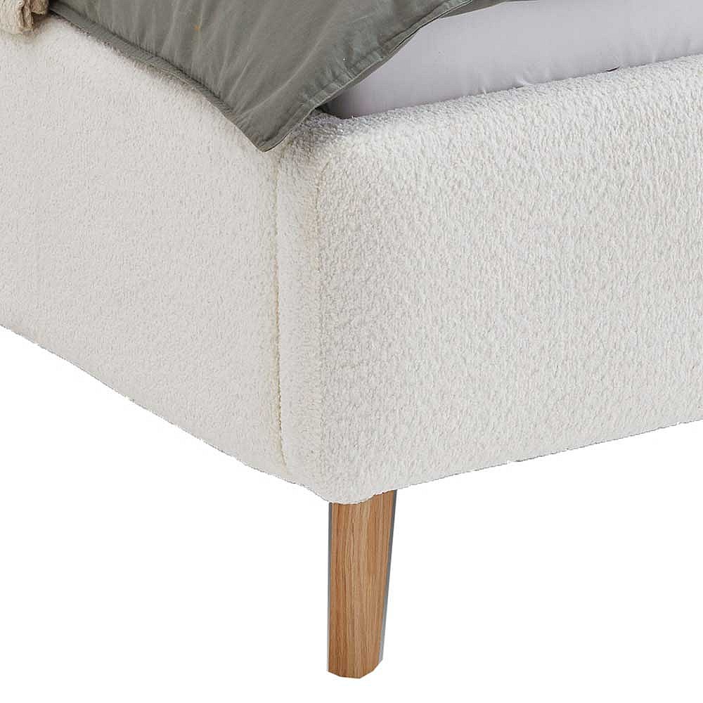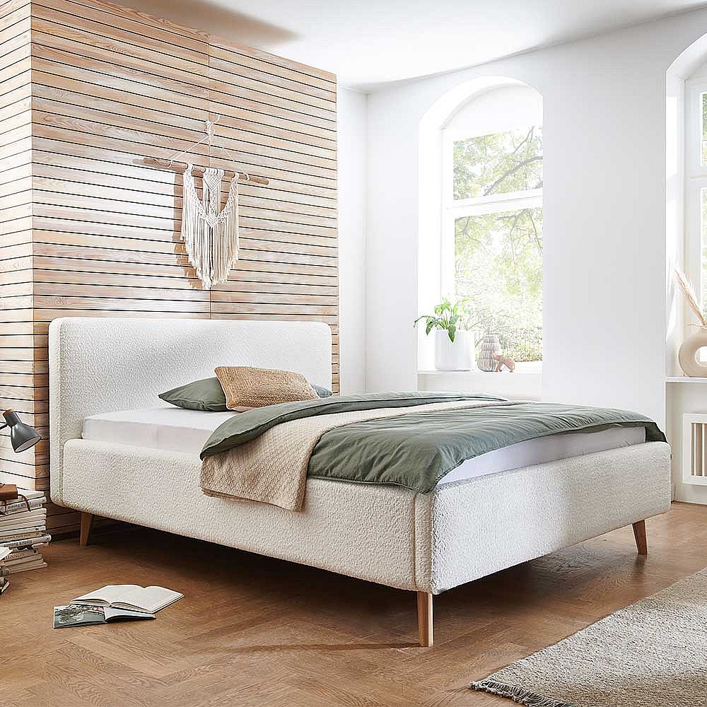 Polsterbett Skandi Stil in Cremefarben Vierfu�gestell aus Eiche