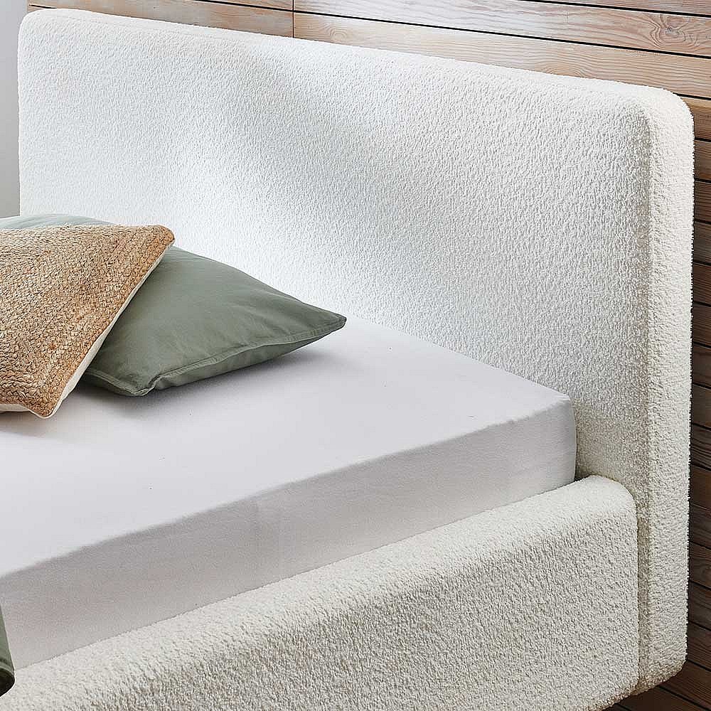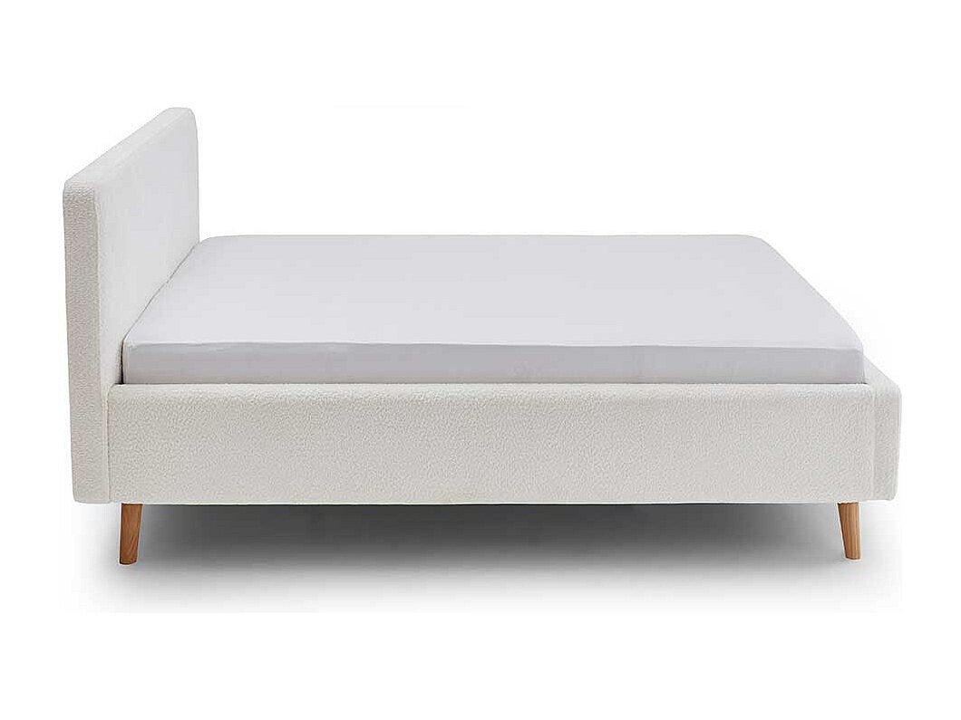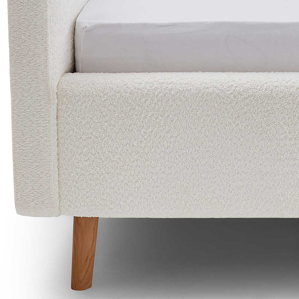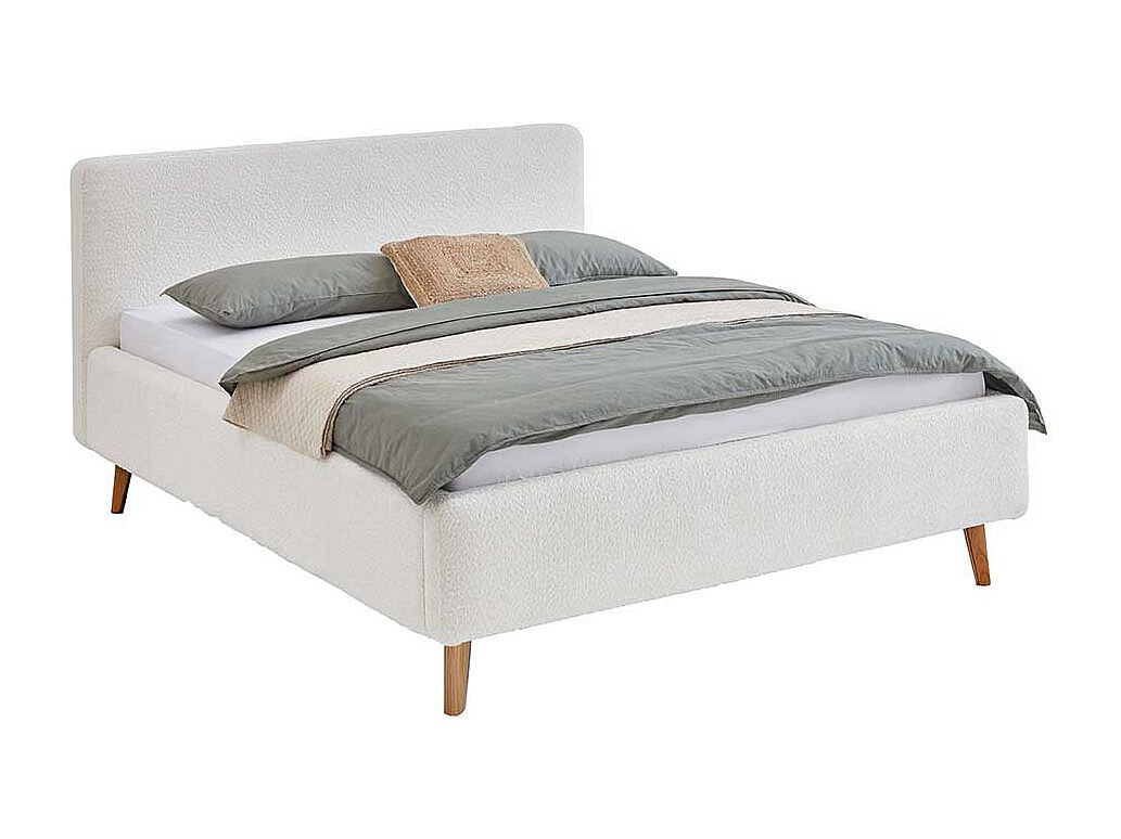 Polsterbett Skandi Stil in Cremefarben Vierfu�gestell aus Eiche