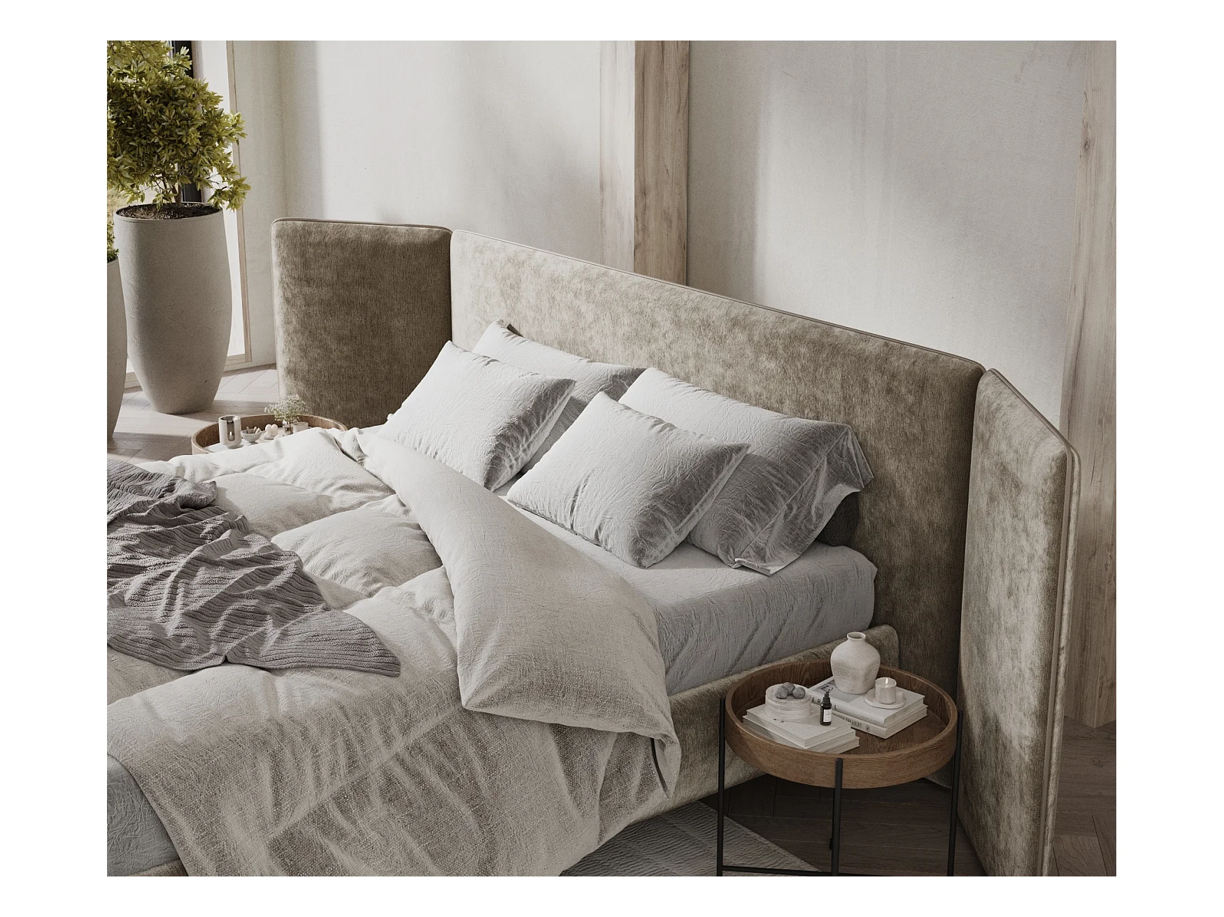Polsterbett Tokyo - 180 x 200 cm - Chenille-Stoff - beige