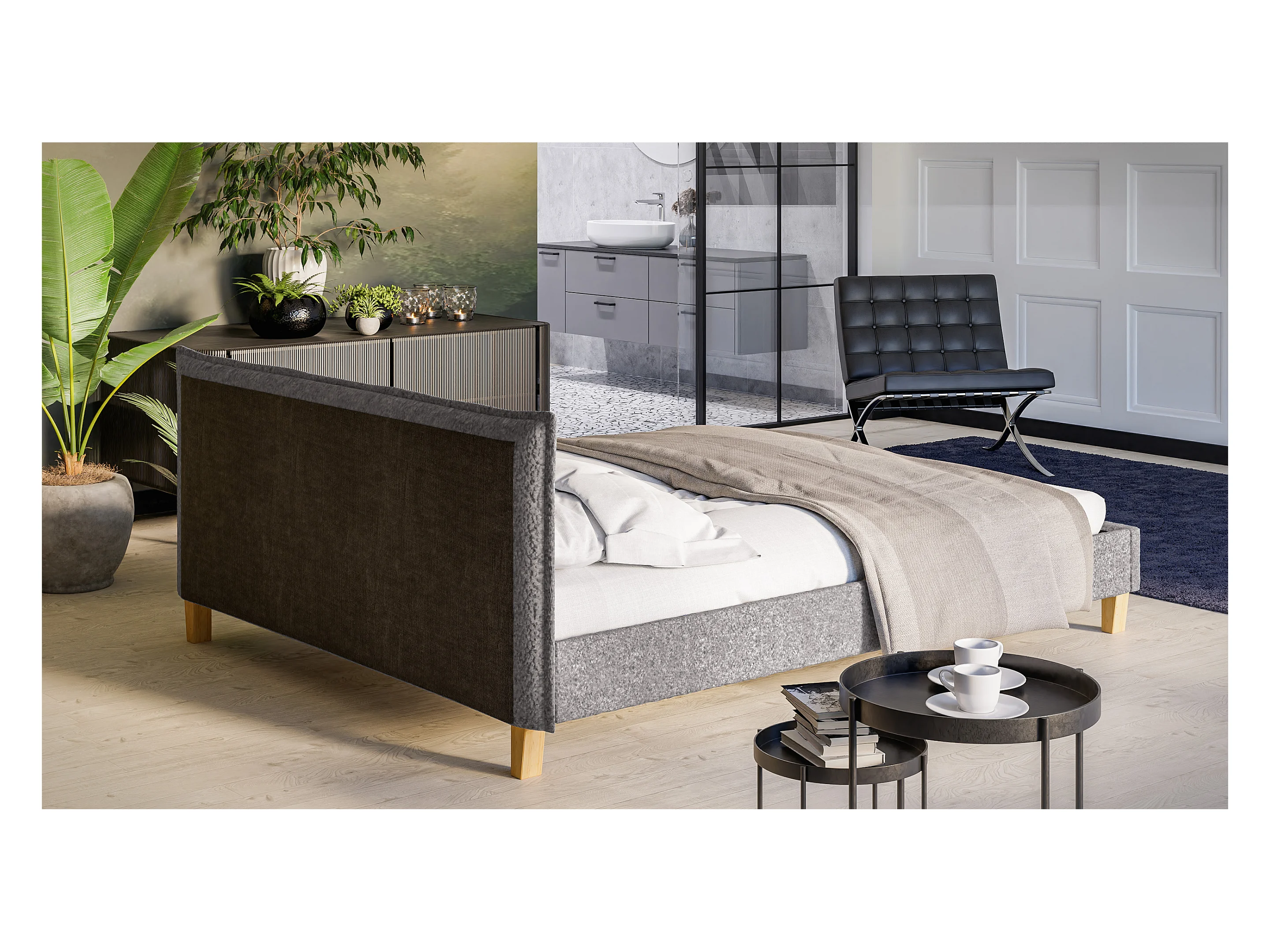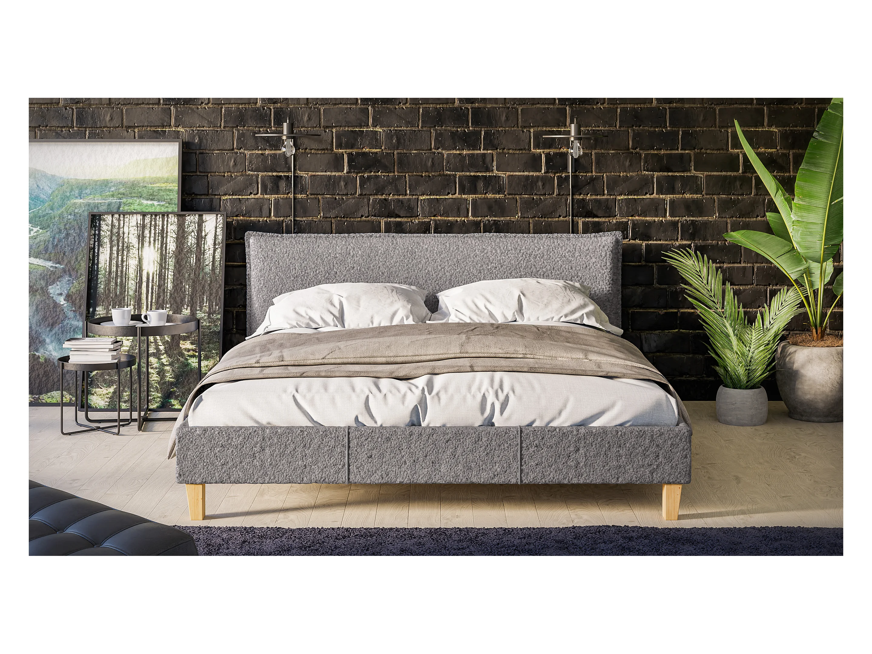 Polsterbett Uriah Boucle Stoff Füße aus Massivholz